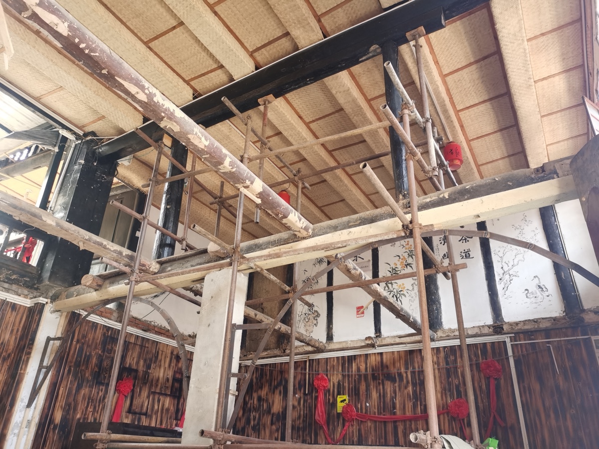 汉中一文保私宅陷维修僵局:墙体开裂靠钢管支撑,房主自购材料却没权修