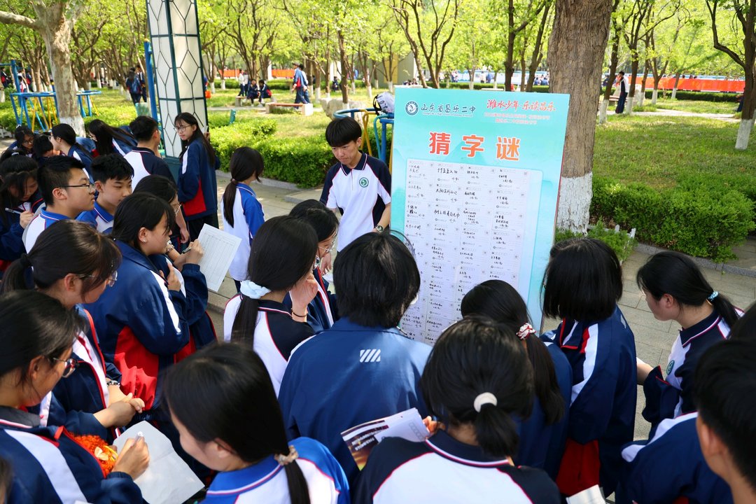 仪式结束后,与会人员现场观摩了昌乐二中校园特色阅读空间,为学生贴心设置的常态化阅读环境以及大漆工艺吉他展示、校园书市、猜字谜、飞花令、诗词擂台等特色活动区,让传统文化在指尖传承、在心中生根,展示了学校将阅读与传统文化、学生实践体验深度融合的创新成果。