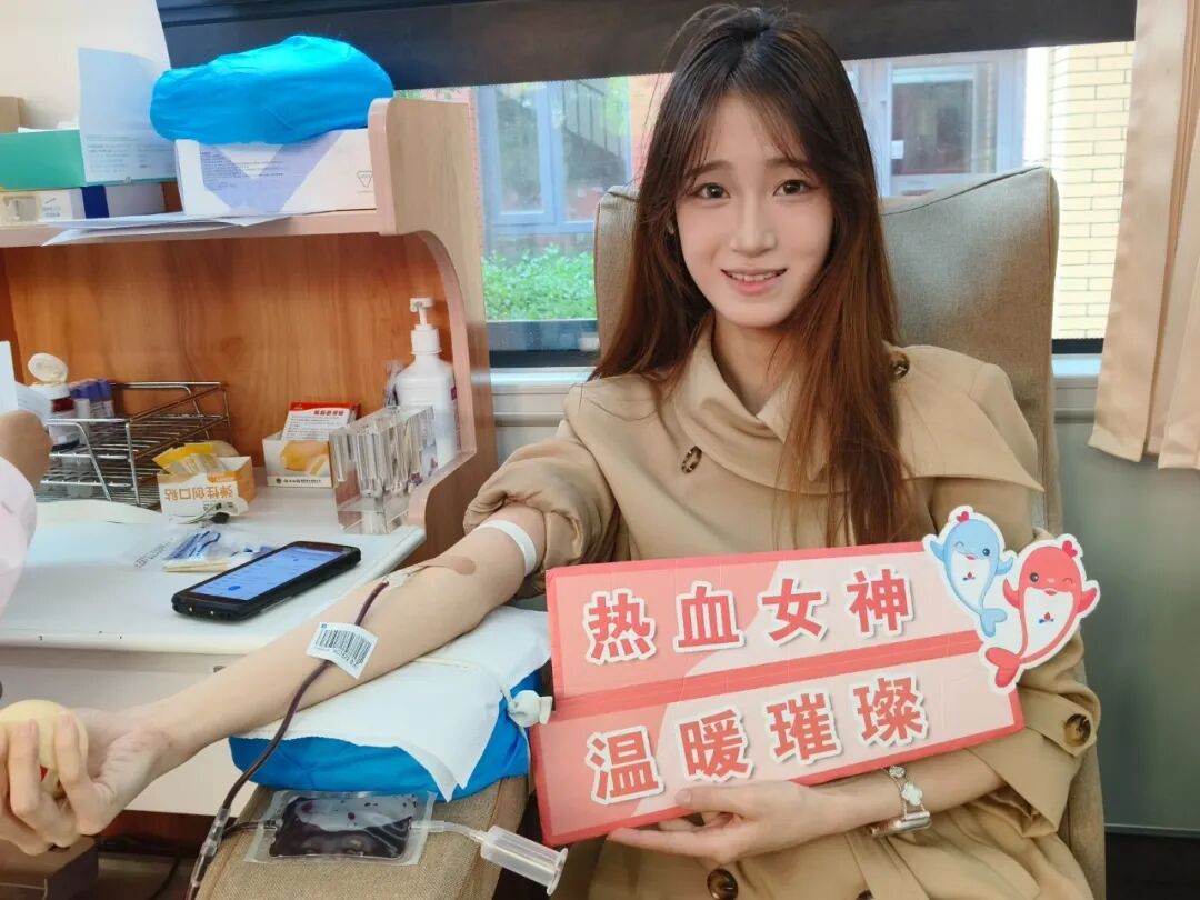 商贸与新媒体学院2025级网络直播与运营1班团支书尹昭文,虽是大一女生,她勇敢带头献血,成功献血300毫升,完成献血初体验。