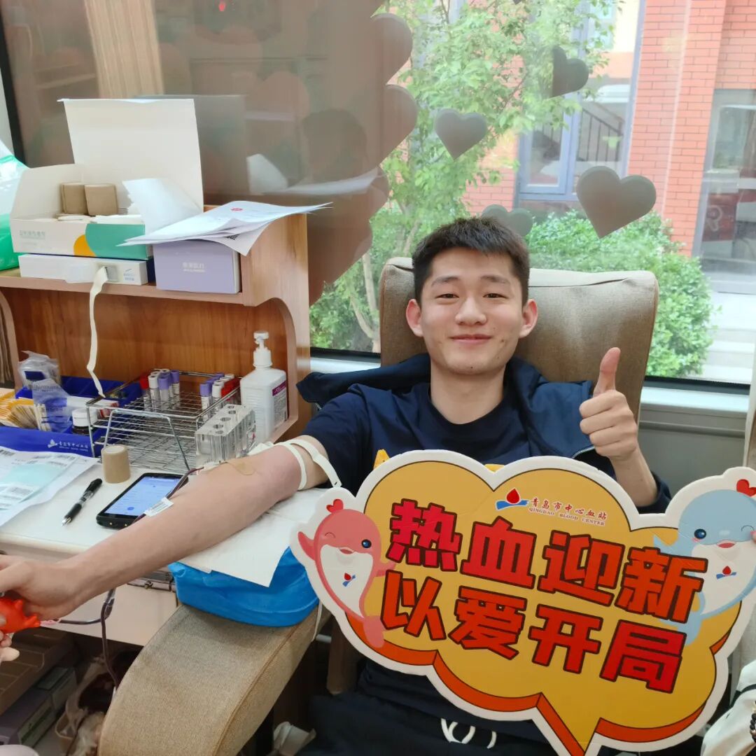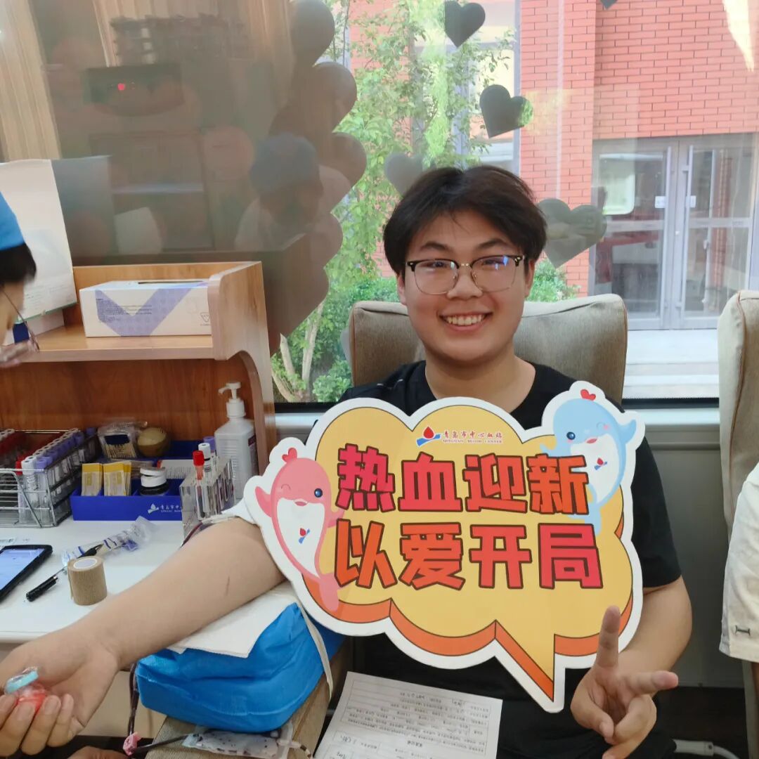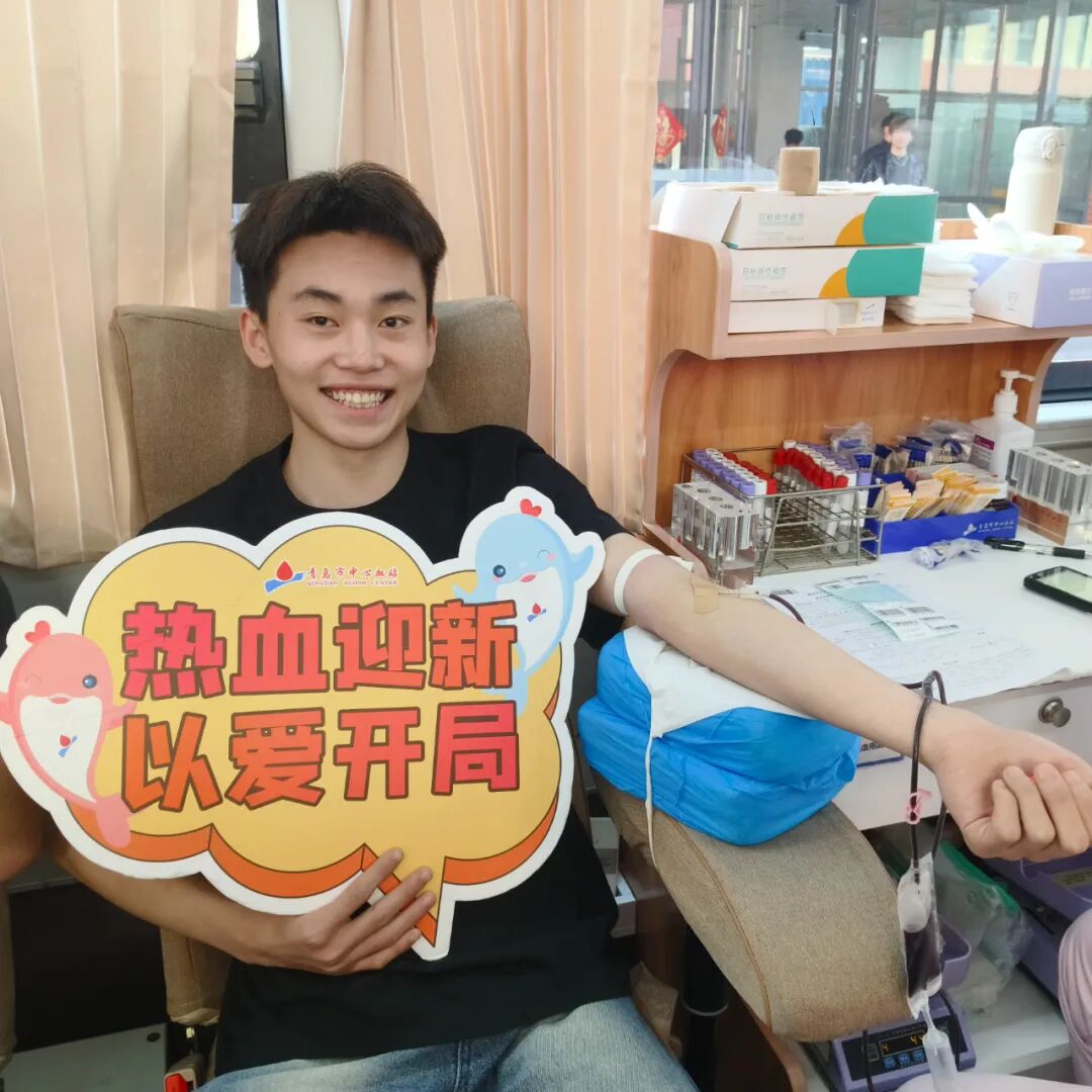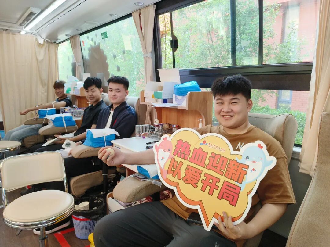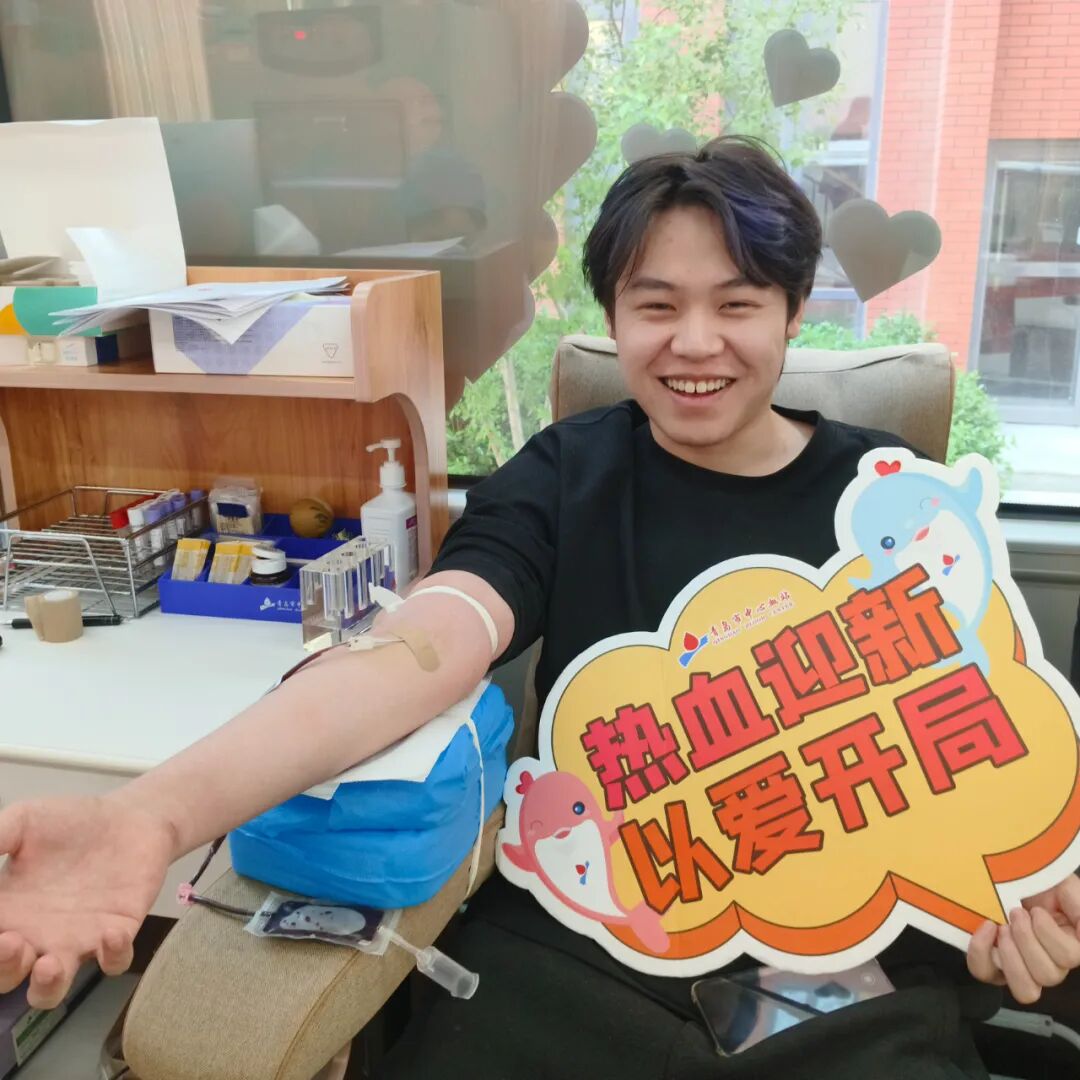 受其感召的美术与设计学院大三学生刘振成功献血400毫升,这是他第四次献血,累计捐献全血1600毫升。
