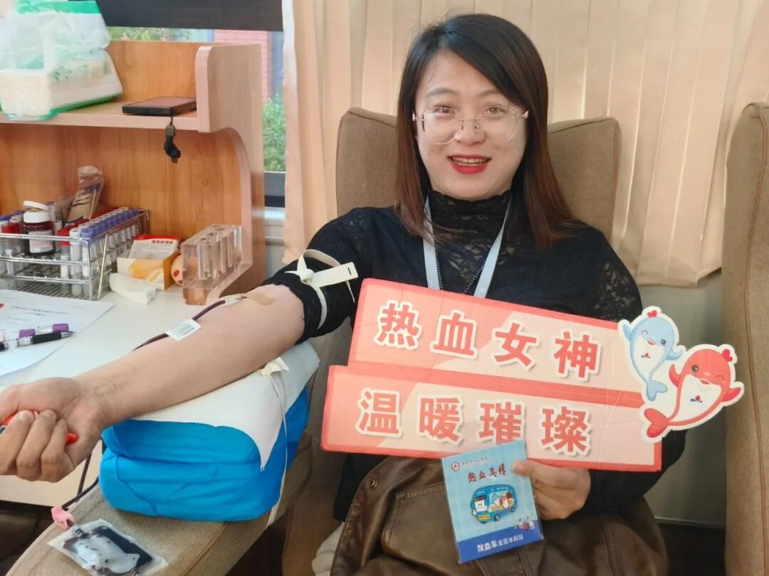 献血队伍中,美术与设计学院副院长麻玉红率先垂范,成功献血400毫升,这是她第五次献血,累计献全血2000毫升,并成功留样造血干细胞。身为学院领导,她用点滴热血为生命接力,以亲身行动践行公益精神,带动多名学生加入到无偿献血队伍中来。