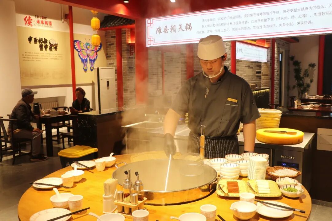 潍坊首家非遗美食体验馆由潍坊富华大酒店打造,集非遗美食展示、传统技艺体验、特色美食品鉴于一体,馆内集中汇聚了朝天锅、肉火烧、鸡鸭和乐、临朐全羊宴等潍坊九大名食,这些美食均已成功入选省级非遗美食名录,承载着潍坊深厚的饮食文化底蕴。市民与游客可在现场近距离观赏非遗美食的制作技艺的同时,品尝地道潍坊风味,在烟火气中感受潍坊非遗美食的独特魅力。