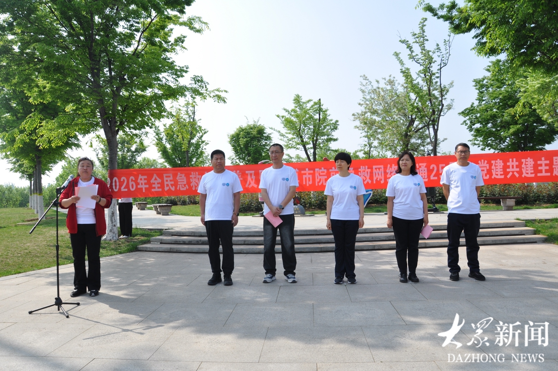 4月17日上午,孝妇河湿地公园春风微漾、党旗高扬。2026年全民急救技能普及暨淄博市院前急救网络开通25周年党建共建主题纪念活动在此举行。活动以党建为引领、以公益为纽带、以民生为导向,市医疗急救指挥中心联合淄博港华燃气有限公司举办,来自全市卫生健康系统、急救站点(哨点)、爱心企业、急救志愿者队伍的百余名代表,共同回望25载急救征程,一起吹响全民急救技能普及新号角,健步齐走健康路。