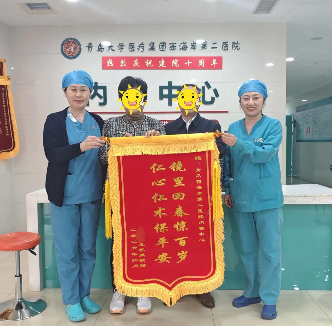 半岛网4月18日讯 (记者 纪豪杰)“镜里回春惊百岁,仁心仁术保平安”—— 近日,一面饱含深情的锦旗送到了内镜中心,这是97岁高龄的张爷爷(化名)及其家属对青岛西海岸第二医院内镜中心程伟主任、麻醉科董龙禹主任及护理团队的由衷感谢。历经一场高难度的肠镜下息肉切除手术,张爷爷全程无痛、顺利康复,用实际行动见证了医疗团队的专业与温度。
