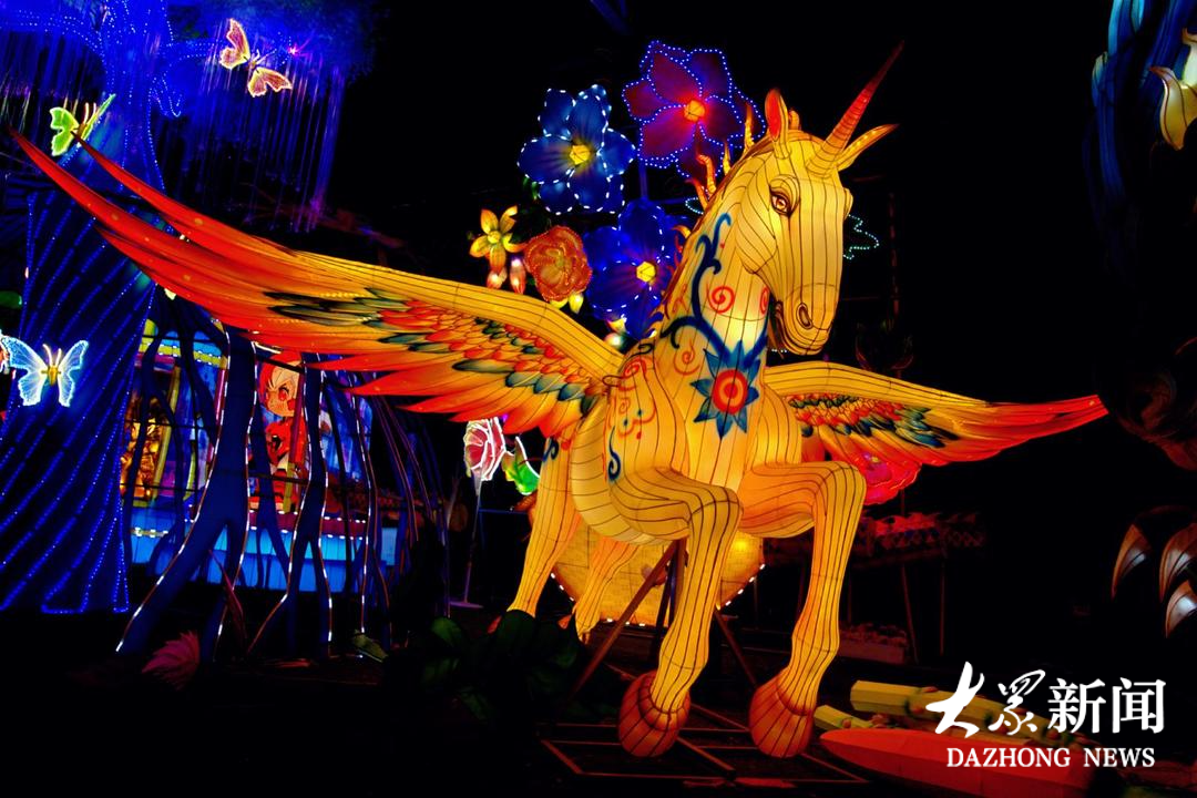 如那只5米高的“飞马”,飞上天时,鬃毛飞扬、羽翼舒展;当作为花灯化作商场里的美陈时,同样流光溢彩、气象峥嵘。王永训不断将风筝技艺延伸至更多场景,让这门古老的手艺源源不断地焕发出商业活力与生命力。