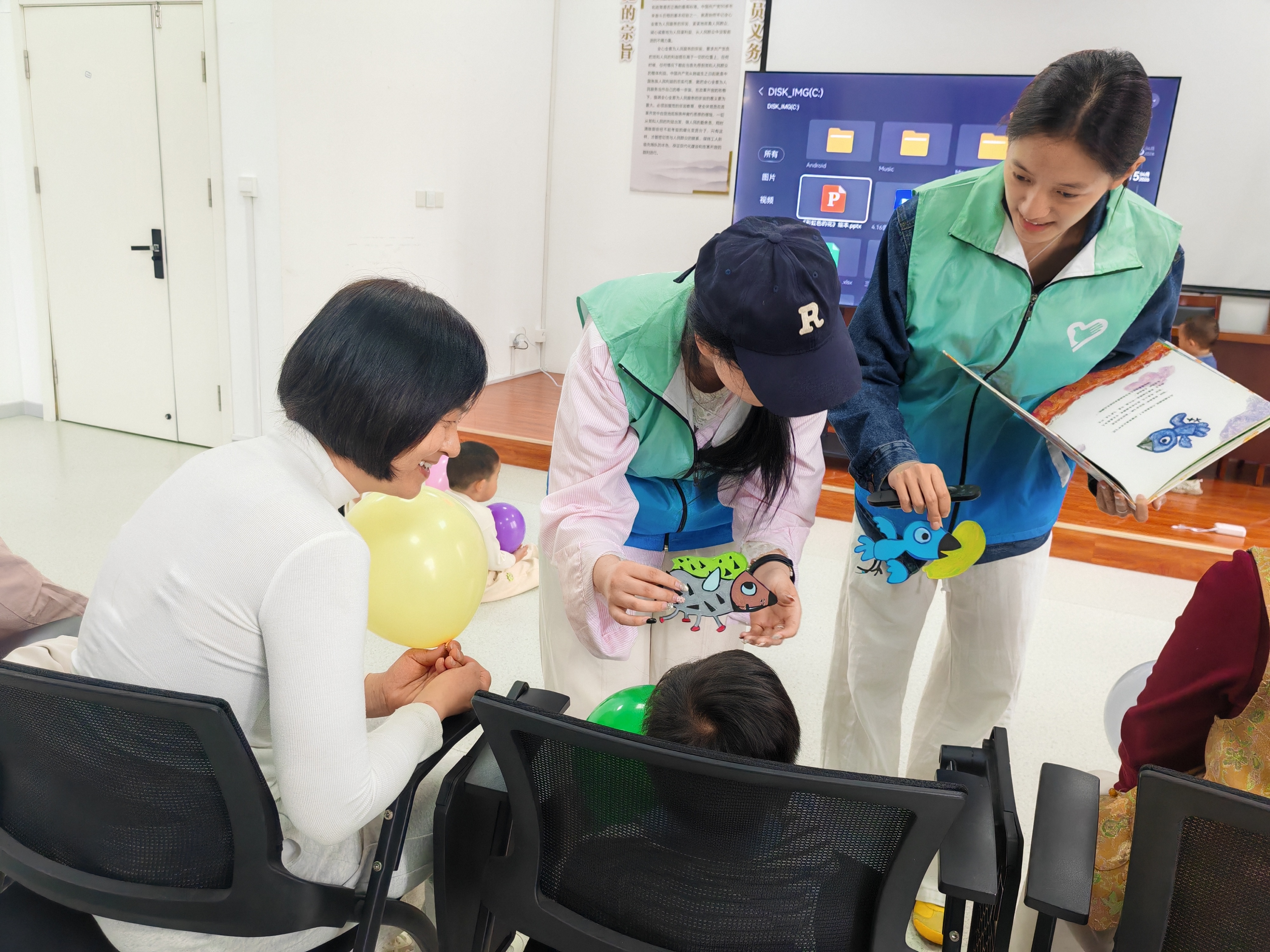 共读环节过后,现场开启温情亲子互动专场。在志愿者与社区工作人员的引导下,家长与孩子并肩而坐、轻声交流,近距离复盘绘本精彩片段,面对面畅谈阅读心得体会,互相分享内心感悟想法。家长抛开日常忙碌琐事,放下电子设备全身心投入陪伴,在一字一句共读、一言一语畅谈中拉近心灵距离,在温馨互动中增进彼此理解信任。活动现场互动氛围轻松热烈,大学生志愿者用童趣十足的语言向孩子们提问,孩子们用稚嫩可爱的话语踊跃回应。