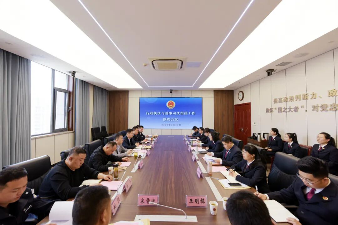 为进一步深化行刑衔接机制,构建顺畅高效的“两法衔接”工作格局,2026年4月15日,枣庄市峄城区检察院组织召开行政执法与刑事司法衔接工作联席会议。区公安分局、区人社局、区市场监管局、区自然资源局、区生态环境局、区烟草专卖局等相关单位负责同志受邀参加。区检察院党组成员、副检察长王爱华及第一检察部、第二检察部干警参加会议。