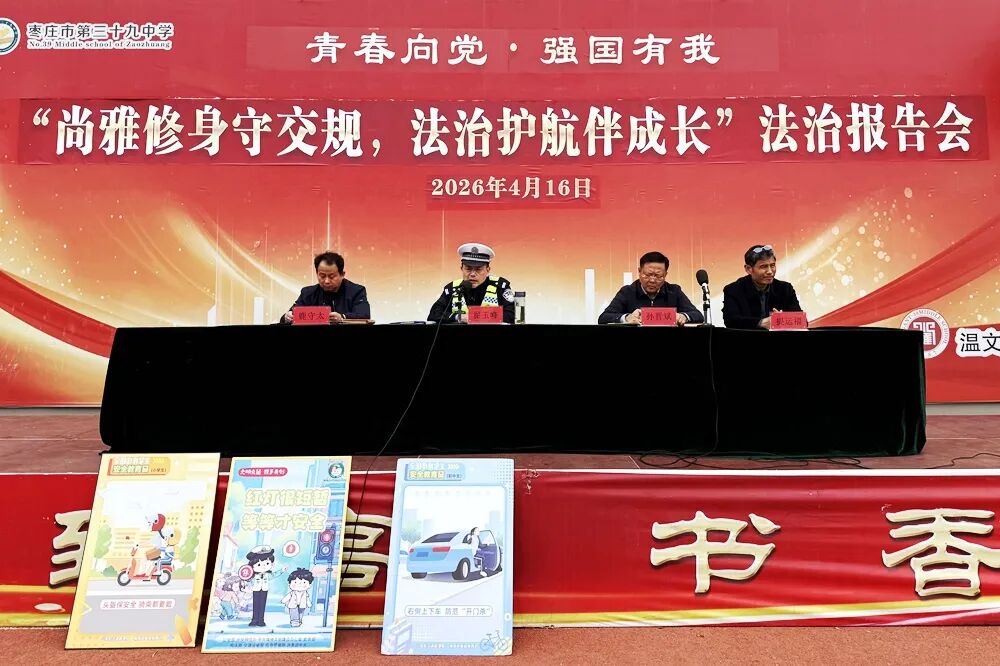 为切实增强学生交通安全意识和自我防护能力,有效预防和减少涉学生道路交通事故发生,4月16日,枣庄市台儿庄公安分局交通管理大队组织警力到枣庄市第三十九中学开展交通安全宣讲活动。