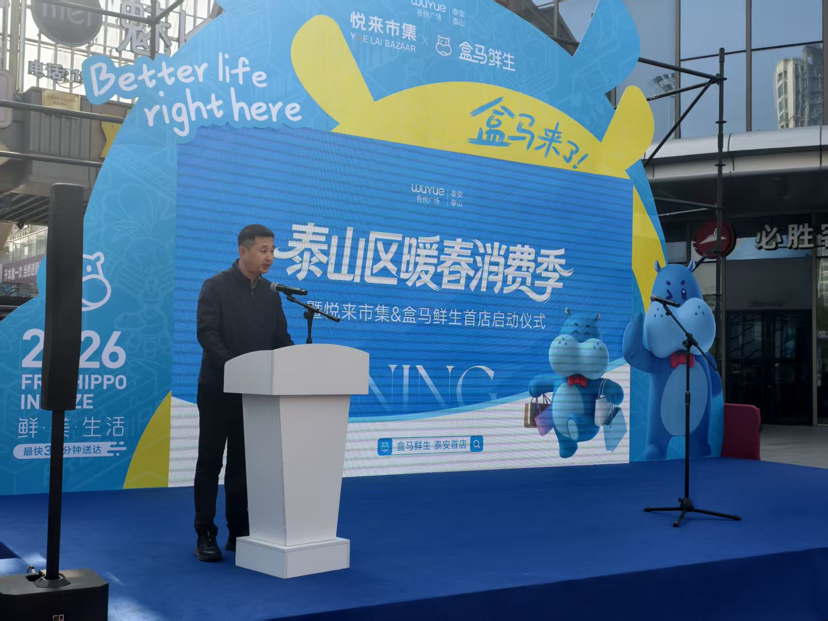 4月17日,泰山区暖春消费季启动。启动仪式后,盒马鲜生泰安首店在泰山吾悦广场正式开门迎客。
