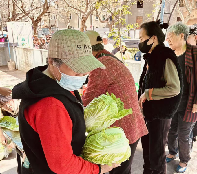 正在忙着搬白菜的张先生,额头上已经渗出了细汗。他说,自己是在网上看到薛先生发布的义卖视频,特意过来帮忙的。“都是举手之劳,能帮着把这份爱心传递下去,心里特别踏实。看着大家你买一棵、我买两棵,一起为公益出力,那种感觉特别温暖,也希望更多人能加入进来,聚沙成塔。”