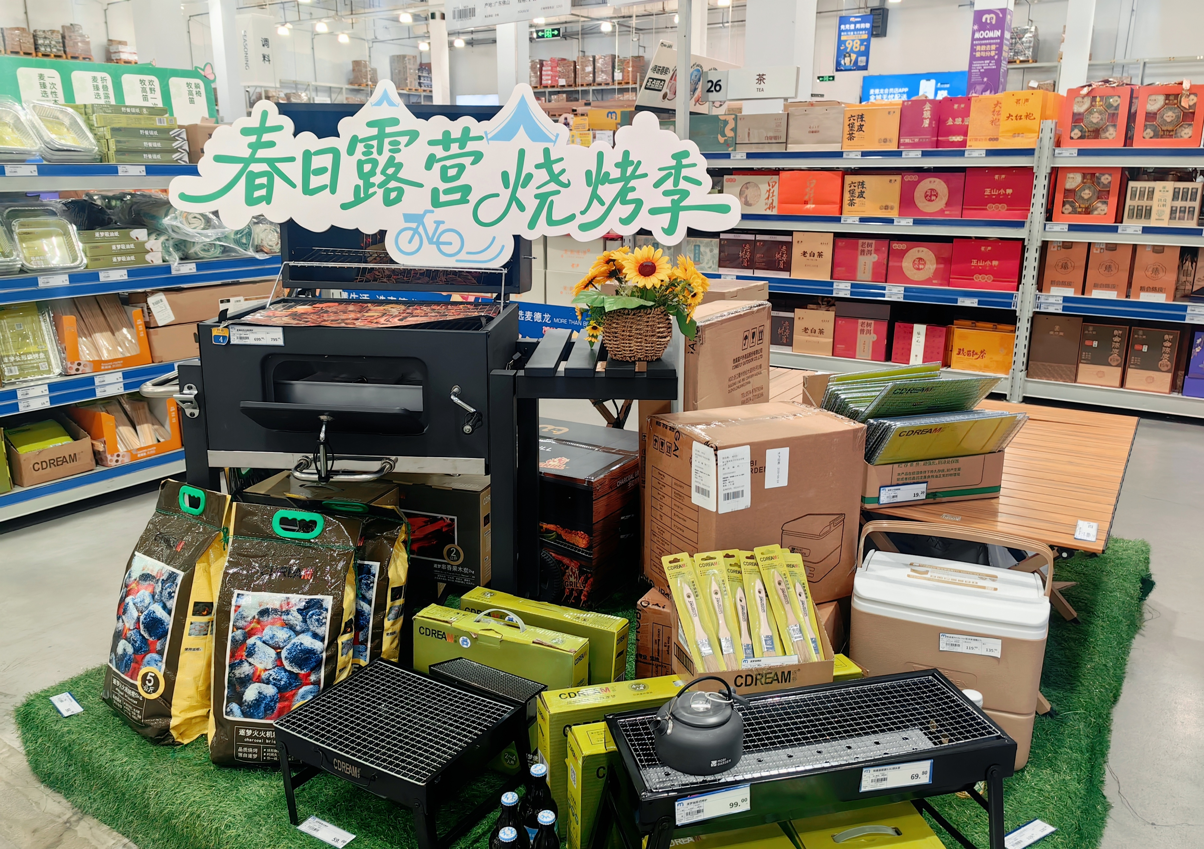 近日,记者走访青岛多家商场发现,春游相关商品被摆放在显眼位置,不少超市专门开辟了“露营烧烤”“野餐便当”主题陈列区。位于市北区的麦德龙商场内,帐篷、折叠椅、防潮垫、保鲜盒、一次性餐具等露营装备分区清晰,搭配宁夏滩羊法式羊排、澳洲谷饲上脑牛排、黑猪肉烤肠等烧烤食材,形成“一站式购齐”的消费场景。“这周末准备全家去公园野餐,往年得跑好几个地方,现在来麦德龙半小时就能搞定。”正在选购的市民张女士向记者展示购物车,里面既有内蒙古羔羊肉,也有HPP工艺的杨枝甘露,“没有色素香精,给孩子喝也放心。”麦德龙全国门店数据显示,3月以来,露营装备类商品销量环比增长超111%。这一增长在青岛本地同样显著。据麦德龙青岛商场工作人员介绍,近期周末前来采购露营用品的家庭明显增多,单价在200元至500元之间的帐篷和折叠桌椅最为畅销,一次性烧烤炉也因活动期间PLUS会员满199元可9.9元换购而备受青睐。