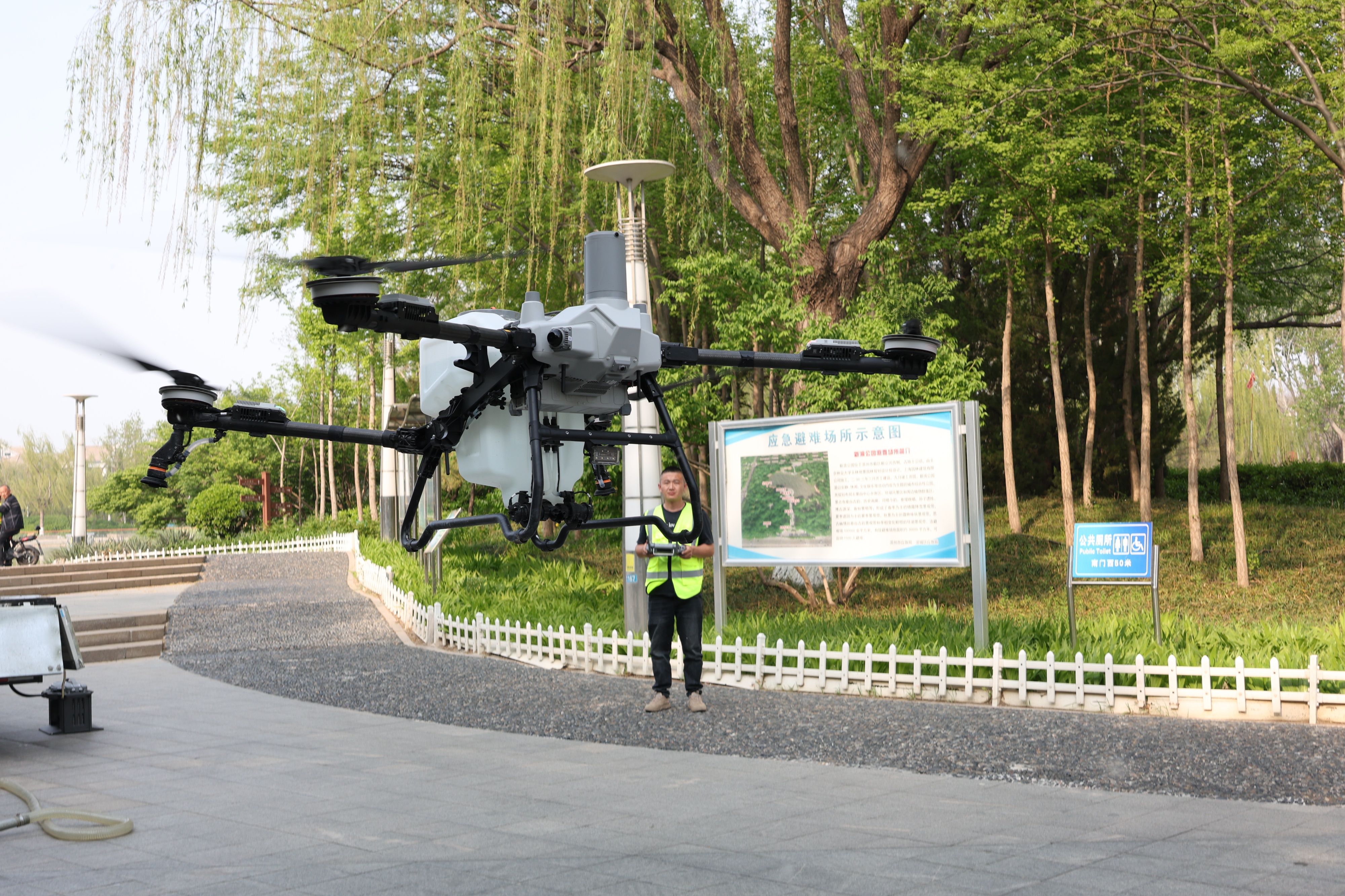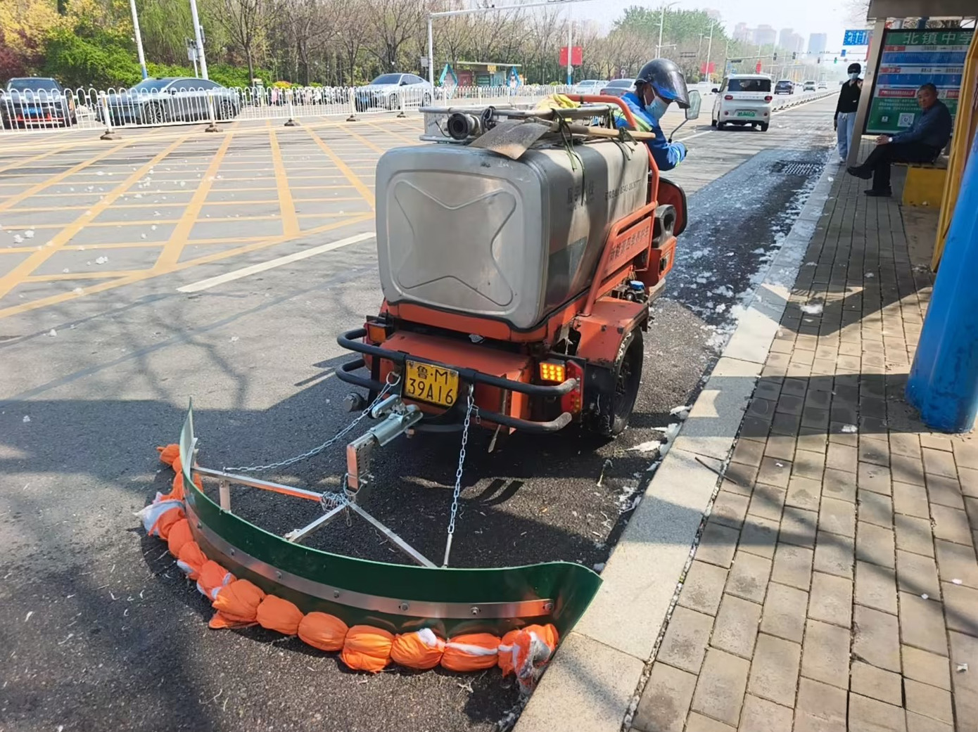 4月7日起,主城区市管区域杨柳飞絮防治攻坚战全面打响,构建空中精准飞防、地面循环湿化的立体阻断体系。空中调配2台无人机,搭载环保缓释型凝絮剂,对杨柳树集中区作业面积达308.4万平方米,高效抑制飞絮空中飘散;地面依托环卫机械化作业力量,调配12辆高压清洗车,其中9辆加装定制高压水炮,针对主干道高大杨柳树开展高空喷射作业,对未完全破裂果序、树冠飞絮和高空飘絮进行定向“击落”,从传播源头减少飞絮持续释放。针对大型车辆难以进入的公园、广场绿地、辅路及背街小巷等区域,灵活调配三轮结构四季养护车开展精细化抑絮作业。空地联动、精准拦截,形成“击落、稳絮、聚絮、收絮”的闭环治理模式,让飞絮在传播途中即被有效管控。