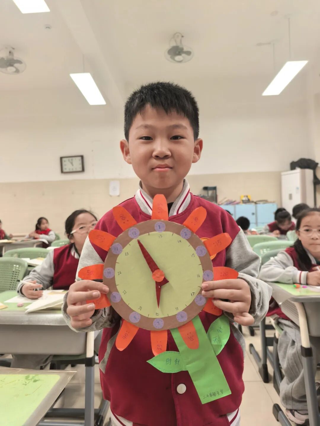 活动中,孩子们充分发挥想象力与创造力,动手剪裁、涂色、组装,制作专属创意钟表。一个个造型别致、色彩鲜艳的手工钟表,既巩固了认读时间的本领,也让枯燥的数学知识变得生动有趣。制作过程中,孩子们相互交流技巧、分享创意,不仅锻炼了动手实践能力与审美创造力,更直观感受时间的流逝,深刻理解珍惜时间、合理规划时间的重要意义。