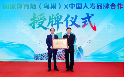 图:国家体育场(鸟巢)×中国人寿品牌合作授牌仪式