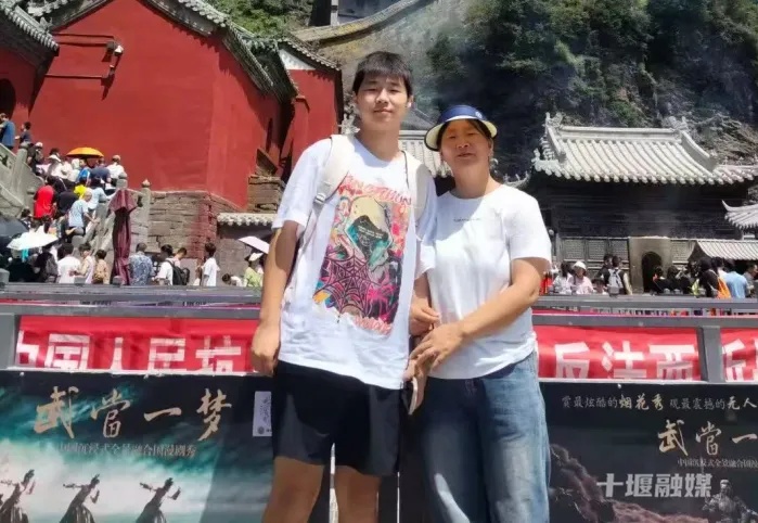 刘泽宇陪妈妈游览武当山。