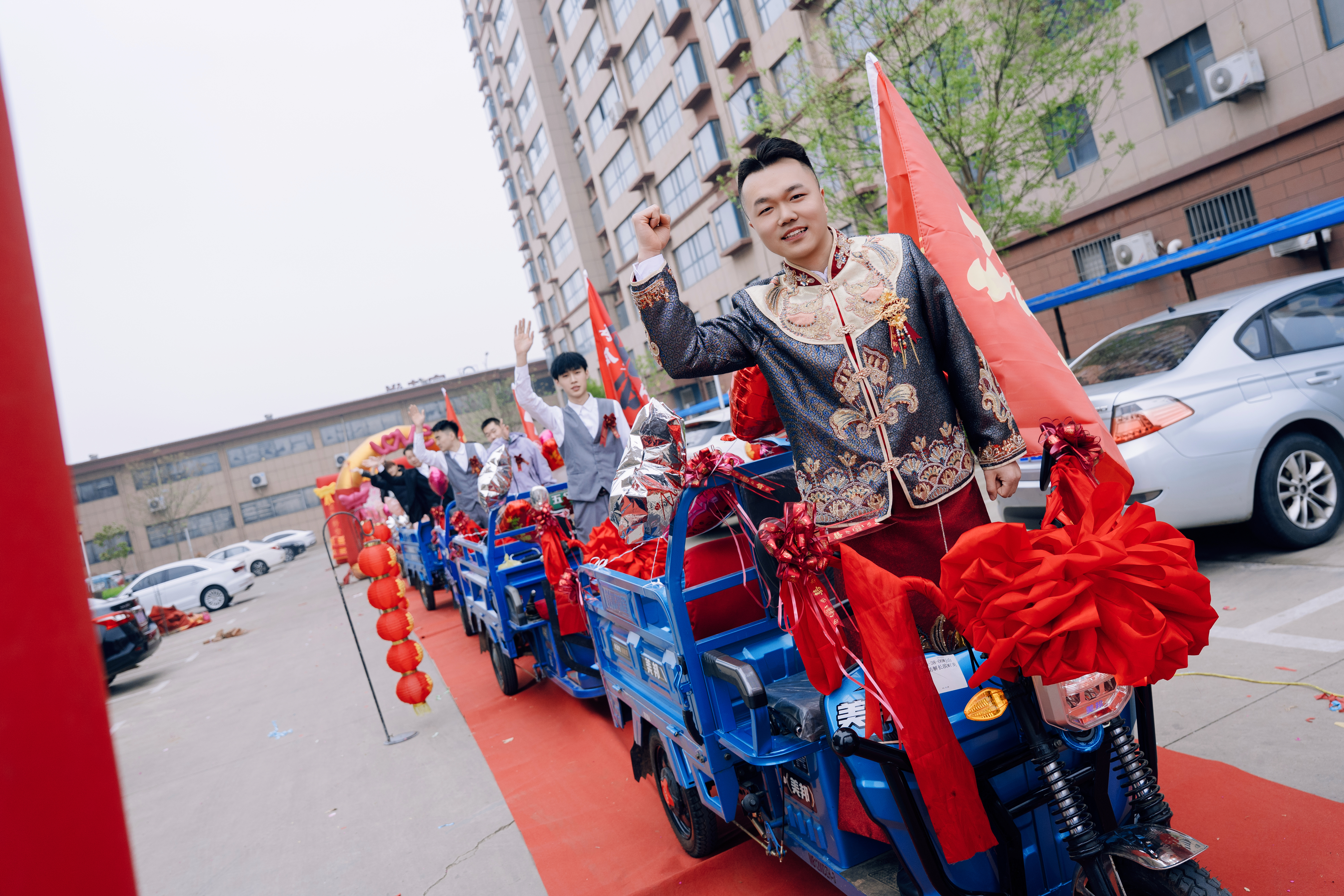 这支三轮车队伍,来自附近亲戚、朋友和邻居的热心相助。“商量婚礼形式的时候,觉得路程近没必要搞复杂车队,就想着用三轮车迎亲,没想到一提议,亲戚邻居都特别支持,主动把家里的三轮车拿出来帮忙。”新娘王轩在采访中笑着回忆,为了让婚礼更体面喜庆,大家提前把车辆仔细擦洗干净,还特意进行了补漆整理,之后系上彩带、贴上喜字精心装扮,“看着大家一起忙活的样子,心里特别暖,感觉这场婚礼因为有了他们的参与,变得更有意义了。”