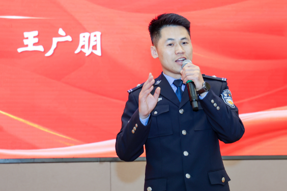 故事类宣讲员,国家移民管理局山东边检总站济南边检站二级警长王广朋以《国门有我》为题,深情讲述了自己从风雪弥漫的西藏阿里高原,到繁忙的济南空港口岸,始终坚守岗位、忠诚履职的动人历程,彰显了新时代国门卫士的责任与担当。