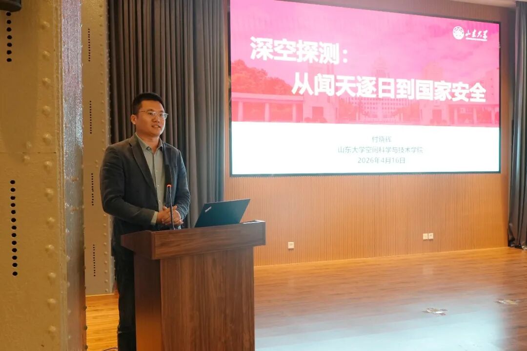 捐赠仪式结束后,山东大学空间科学与技术学院行星科学系主任付晓辉以《深空探测:从闻天逐日到国家安全》为题进行科普讲座;师生代表还参观了总体国家安全观教育展馆,并观看了数字剧场沉浸式实景演出《定远壮歌》。