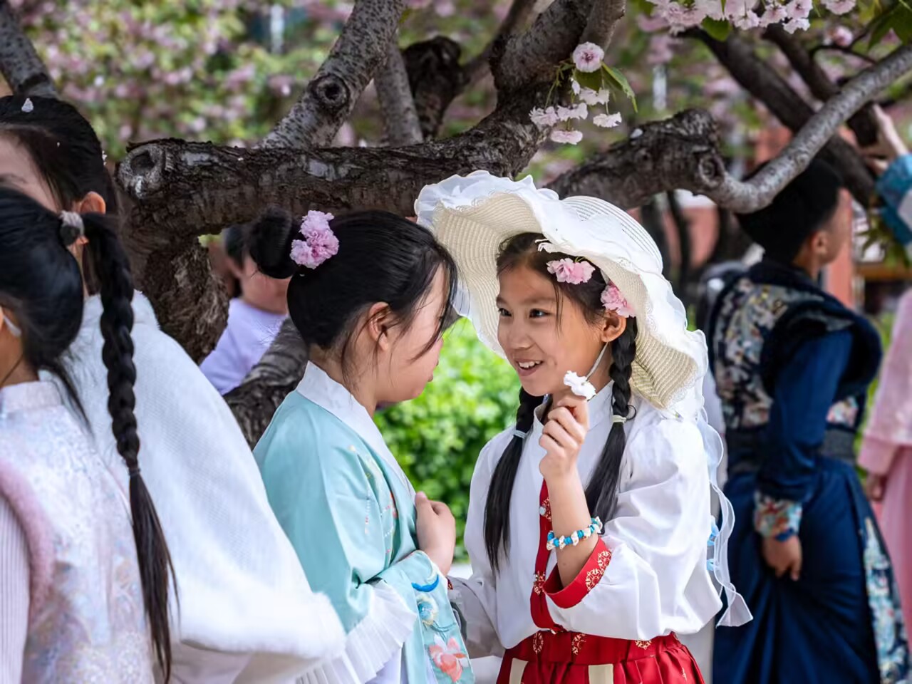 据悉,本届樱花节围绕“识樱、品樱、创樱、护樱”四大课程板块展开,旨在打破学科边界,让学生在真实情境中学习和体验。“我们希望孩子们不仅能欣赏樱花的美,更能通过观察、创作、劳动和感恩表达,与自然产生深度的情感连接。”兴学街小学校长张倩介绍,学校近年来持续推进五育融合,樱花节正是这一理念的生动实践。
