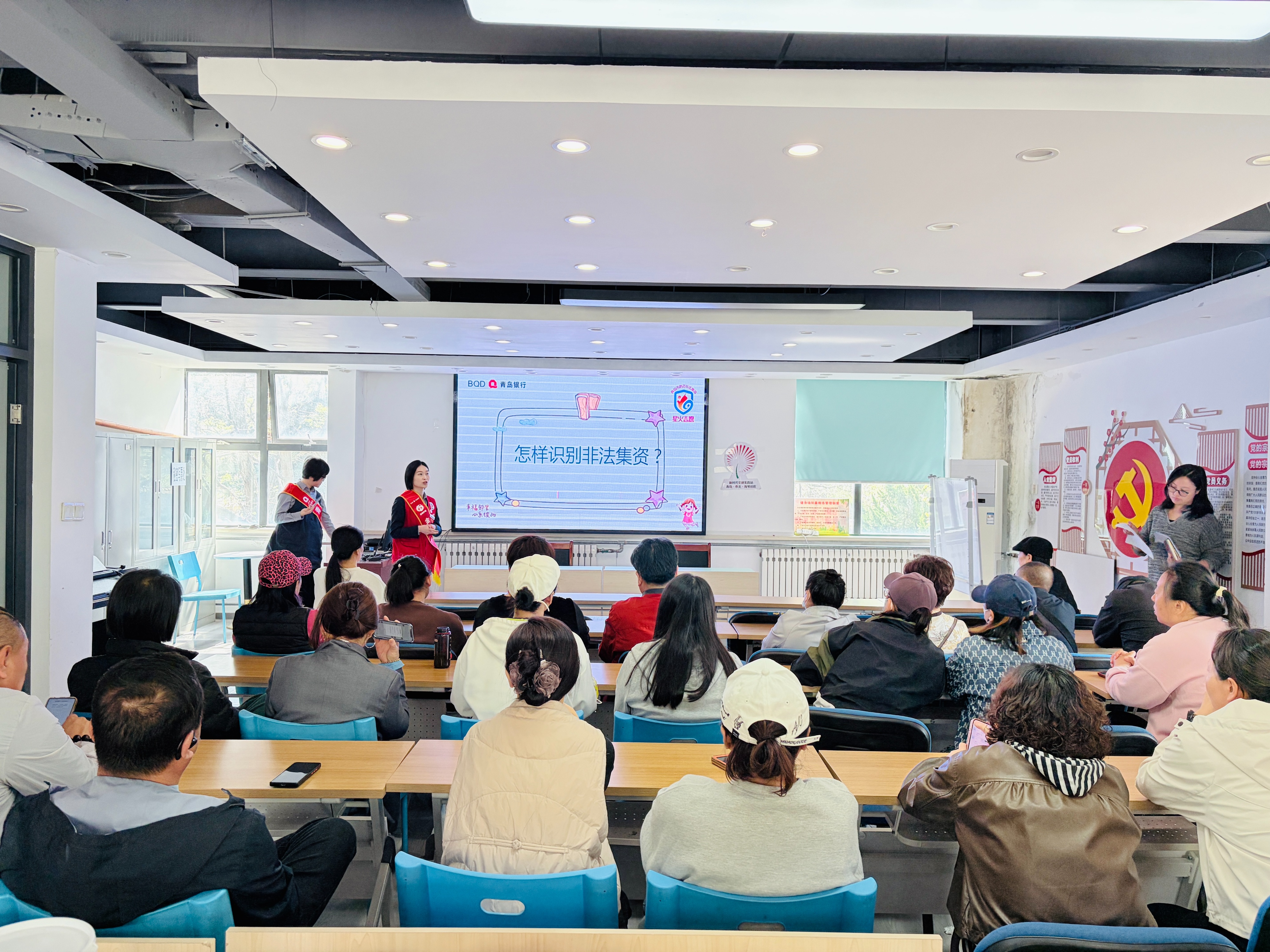 活动现场,社银双方普法人员围绕非法集资的定义、特征、识别方法与防范技巧展开细致讲解。社区普法人员从法律层面阐明,非法集资属于违法吸收公众存款行为,具有隐蔽性、欺骗性和严重危害性,提醒居民认清违法本质、远离各类陷阱。青岛银行工作人员用“画饼、造势、吸金、跑路”四大典型特征,用通俗易懂的语言拆解非法集资套路,让居民快速掌握识别要点,提升风险辨别能力。