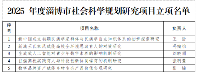 近日,2025年淄博市社会科学规划研究项目评审结果正式公布,齐鲁医药学院共有5个项目获批立项,立项数量再创新高。