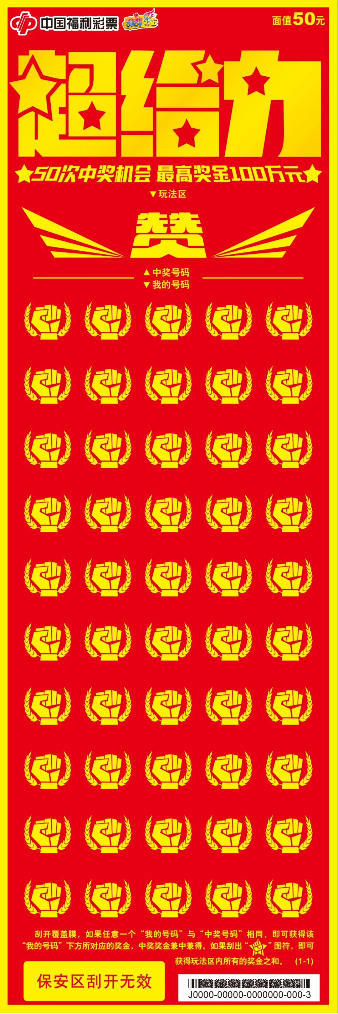 就这张!刮刮乐“超给力50元”——50次中奖,最高100万!