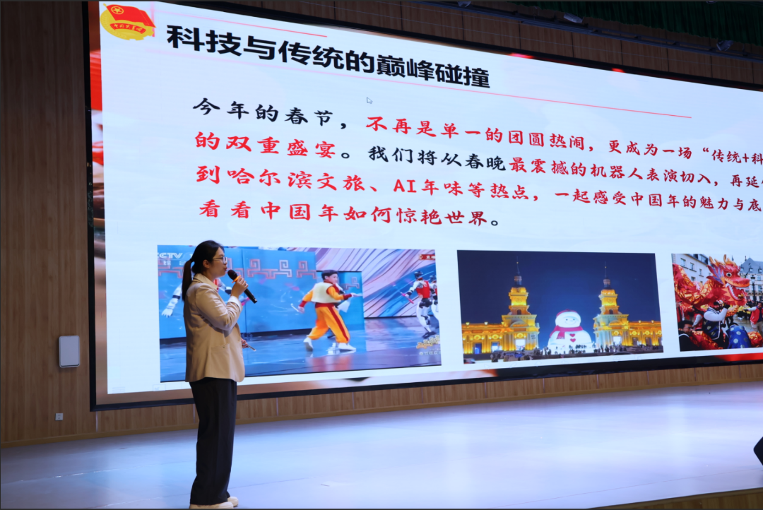 团课以鲜活案例打开视野,让传统文化“潮”起来、“活”起来。春晚机器人舞动武术,中国智造彰显文化底气;哈尔滨冰雪游火爆出圈,文旅新风点亮传统年味;AI写春联、画福字,科技为传统民俗注入新意;国际友人共庆中国年,中华文化走向世界舞台。