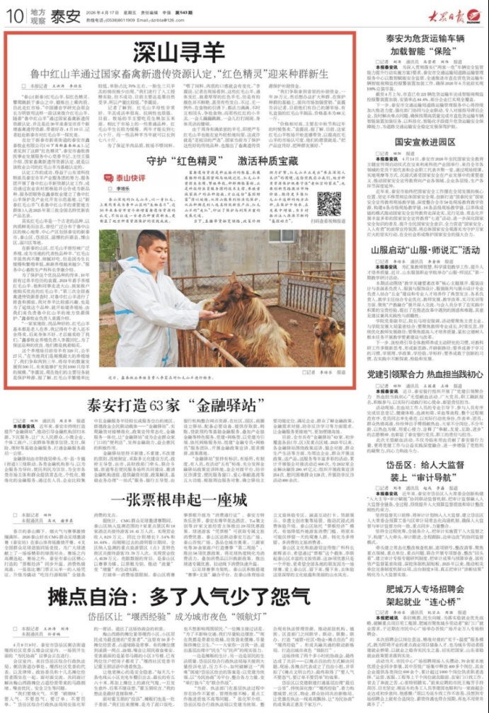 4月17日,《大众日报·泰安新闻》推出重磅策划《深山寻羊》,报道新泰“鲁中红山羊”通过国家畜禽新遗传资源认定,是近30年来泰安市首个新增畜禽遗传资源。详情请点击这里——