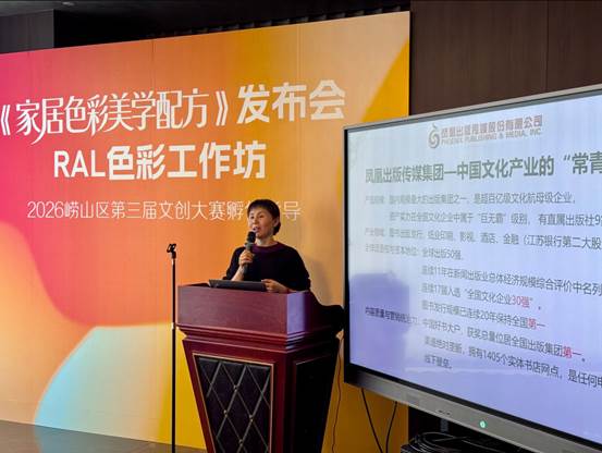 在《家居色彩美学配方》新书发布环节,作者郑爽围绕“如何让色彩成为家最美的语言”分享,解读了新书核心:以实用化、场景化为导向,打破专业壁垒,将色彩知识转化为可落地的家居搭配方案,兼顾美学与实用,助力普通家庭打造有质感、有温度的居住空间。随后,凤凰出版集团、凤凰空间出版社、三棵树家居新材料事业部等嘉宾代表也分别从出版传播、产业应用和生活美学等角度展开交流。