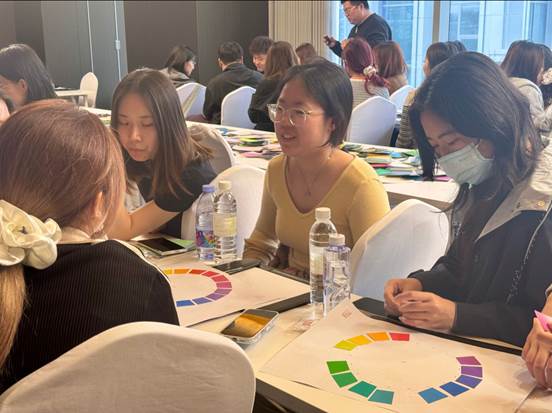 值得关注的是,活动还引入国际色彩体系资源,特别设置“色彩的力量工作坊——从颜色代码到颜色情感”活动。由RAL(劳尔)中国区负责人杨旸女士带领大家开启了一段缤纷的色彩鉴赏与体验之旅,并依托专业色彩理论与实践经验,帮助参赛选手进一步理清文创设计中的色彩逻辑,强化作品创意与城市文化气质的结合,为大赛优质作品孵化提供美学支撑与专业赋能。这一环节也充分体现出色彩从专业标准向生活场景、从技术向体验、从产业向文创的转化与延伸。