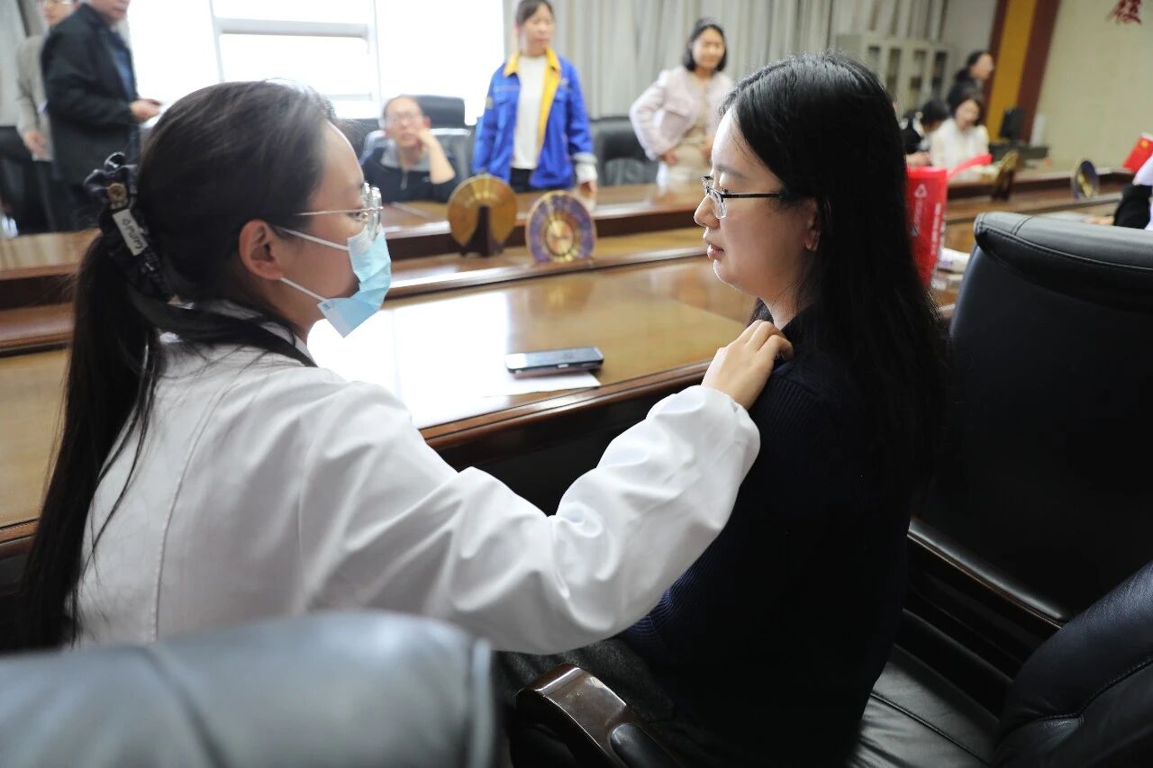 活动现场,为前来咨询的女职工提供了血压血糖测量、中医把脉、公益修眉等多项服务,并根据每个人的身体状况,提供了个性化的健康指导和治疗建议。女职工们积极参与,现场气氛热烈而温馨。