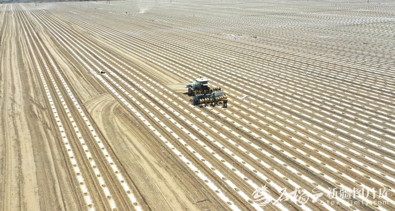 4月初,在托克逊县库米什镇,搭载北斗导航系统的播种机正在精准作业。宋建泽摄