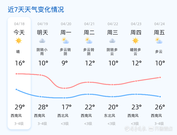 未来三天,滨州市的天气趋势呈现多变特点。预计4月20日,天气为多云转阴,气温进一步下降,最高气温17℃,最低气温9℃;4月21日,天气转为多云,气温有所回升,最高气温22℃,最低气温12℃;4月22日,天气为阴转多云,气温继续保持稳定,最高气温20℃,最低气温10℃。由于未来三天气温波动较大,市民需及时增减衣物,防范感冒等疾病的发生。