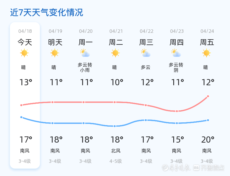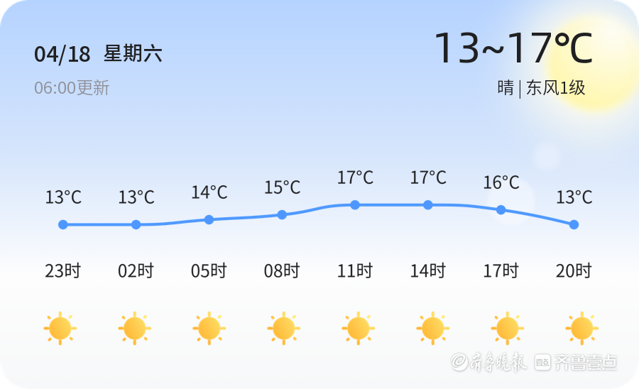 今天是4月18日,星期六,农历三月初二。青岛市迎来晴朗的好天气,气温适宜,全市范围内天气状况良好。目前气温为10.9℃,预计今日最高气温可达17℃,最低气温为13℃。全市各区均以晴天为主,东风1级,空气湿度较高,PM2.5指数为25,空气质量优良。市民朋友们可以在阳光明媚的天气中外出活动,享受春日的美好时光。