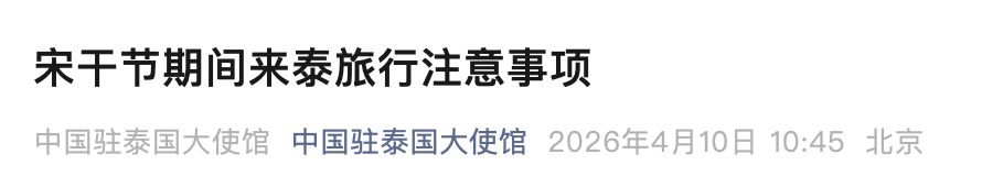 中国驻泰国大使馆日前发布宋干节(泼水节)期间来泰旅行注意事项。