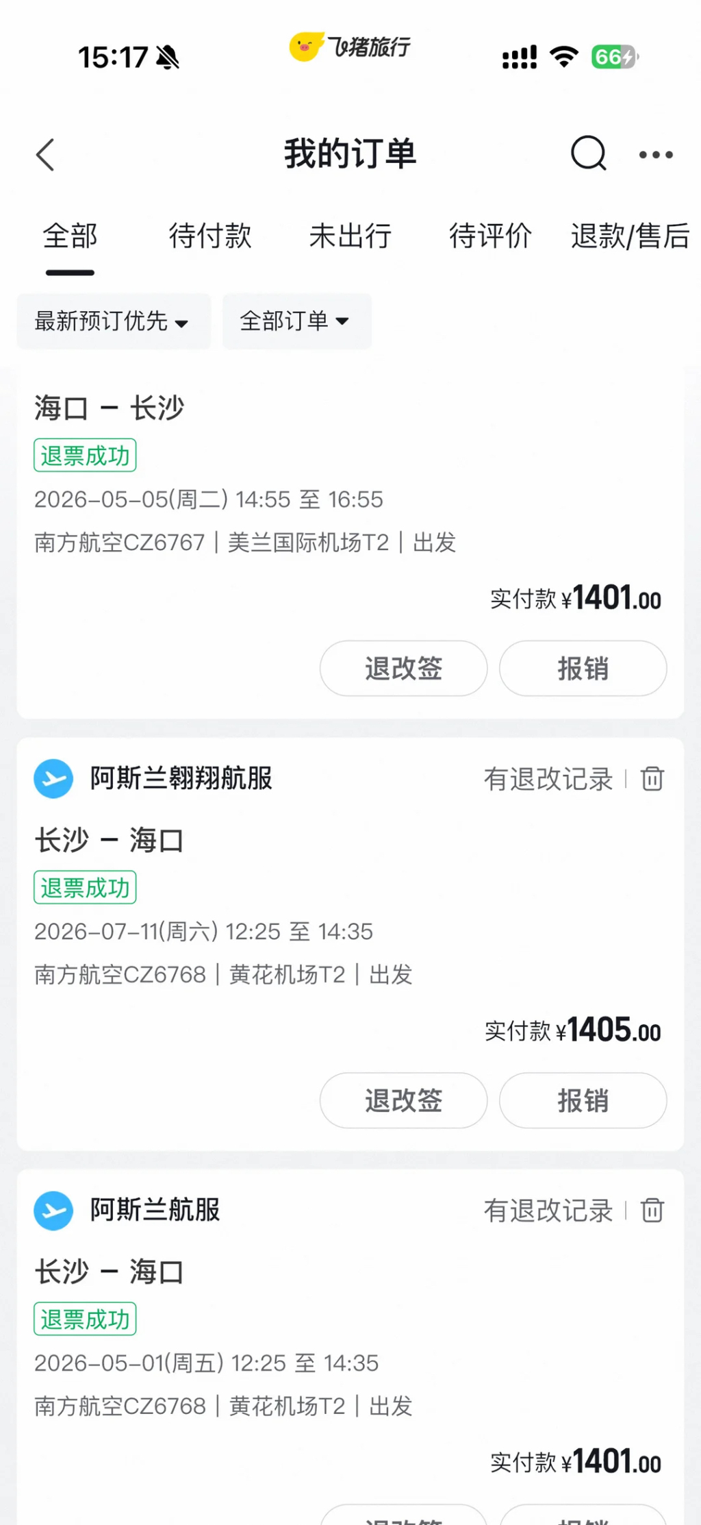 “其中三张退票免收手续费,那张1090元的飞机票最终退款900元,收取了190元退票手续费。手续费部分也得自己承担,飞猪没有补偿。对于承诺的补偿三倍差价,飞猪说得等乘坐完飞机之后才能补偿。现在机票我都退了,差价的三倍赔偿可能也没了。”梁女士介绍说。