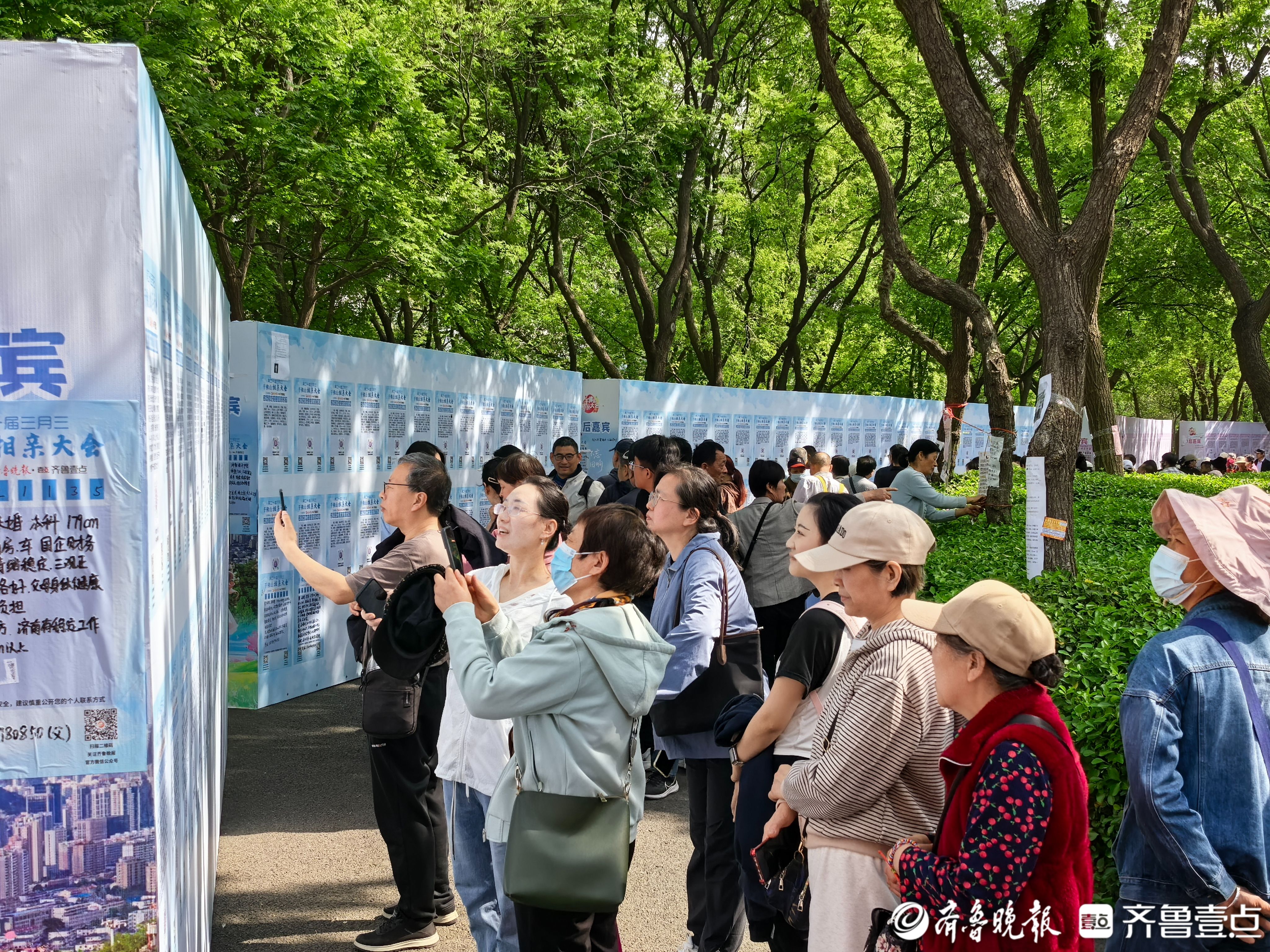 4月18日,由山东数字文化集团指导,齐鲁晚报·齐鲁壹点主办第20届千佛山相亲大会进入第二天。恰逢周六休息日,虽然济南最高气温攀升,但并未阻挡单身男女追寻爱情的脚步。现场人潮涌动,热闹非凡,本届相亲大会迎来人流高峰。