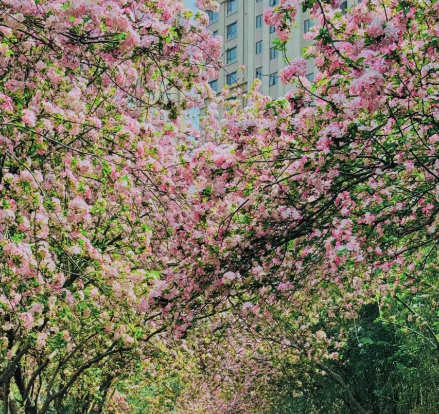 中山公园→晚樱、郁金香、海棠绽放→3号线中山公园站B出入口出站,步行约500米