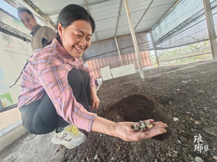 苏贵娟所说的“虫子”,指的是白星花金龟和七星瓢虫。在园区的养殖区,密密麻麻的白色幼虫正蜷缩在黑褐色的物料中蠕动。“这些是白星花金龟的幼虫,专吃烂果子、烂秸秆。”苏贵娟抓起一把,“排出来的‘虫砂’是最好的有机肥。”