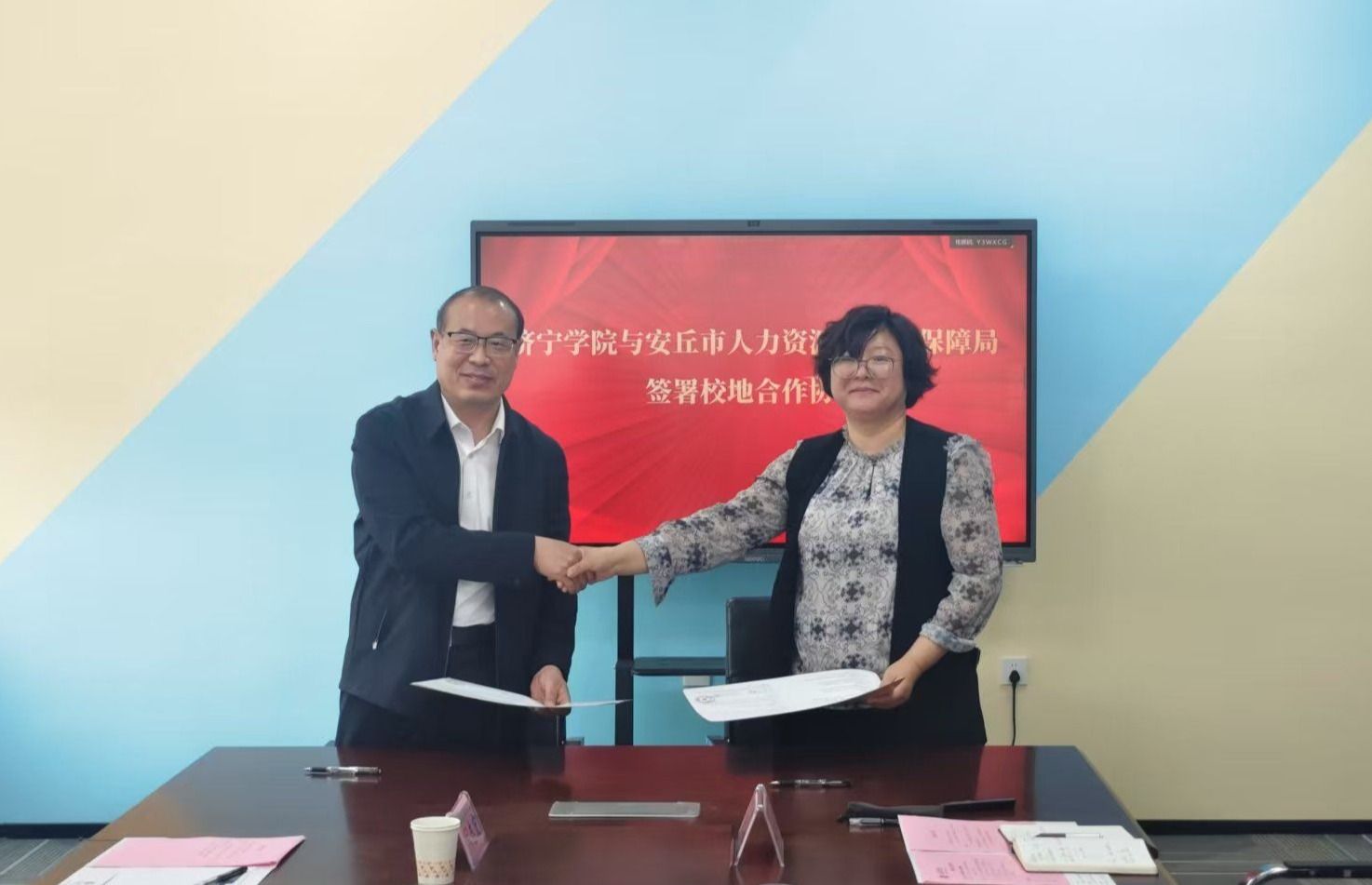 活动当天,学校与安丘市人社局及随行企业开展了校地企座谈会。围绕人才培养、实习实践、产教融合等深入探讨,并现场举行了校地人才引进合作签约仪式。此举不仅拓宽了跨区域人才合作渠道,更为毕业生开拓了更多优质就业资源,实现人才合作双向赋能。