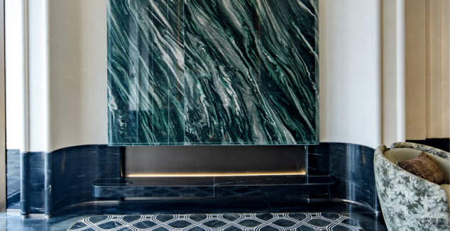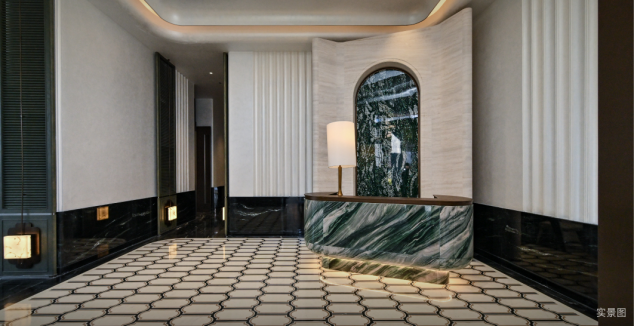 首先,是品种的绝对高度。项目所甄选的奢石,源自意大利、安哥拉等世界著名矿脉。这些矿脉出产的石材,在色彩饱和度、纹理独特性、晶体纯净度上具有公认的顶级地位。例如,雅士黑金的沉稳贵气、芬迪绿的自然生机、安哥拉黑的深邃神秘、星空猫眼绿的梦幻光影……皆可与青岛的海洋文化形成精神共鸣,而每一块奢石的运用,都经过设计师对纹理走向、色彩过渡的反复推敲,确保其在空间中呈现最佳的艺术效果。