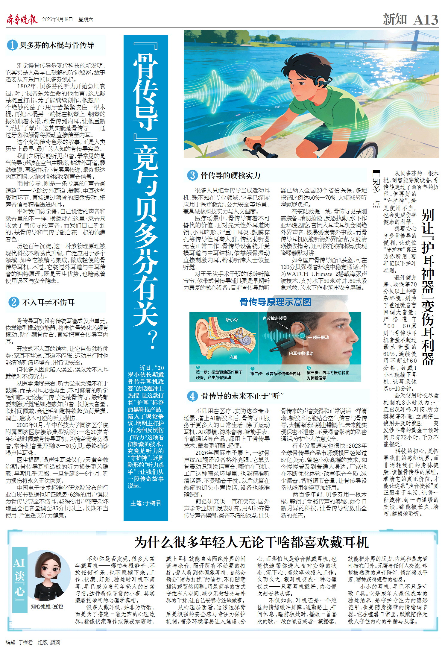 从贝多芬的一根木棍,到医疗植入体、智能穿戴设备,骨传导走过了两百年的历程。但再好的“守护神”,若是使用不当,也会变成伤害健康的利器。