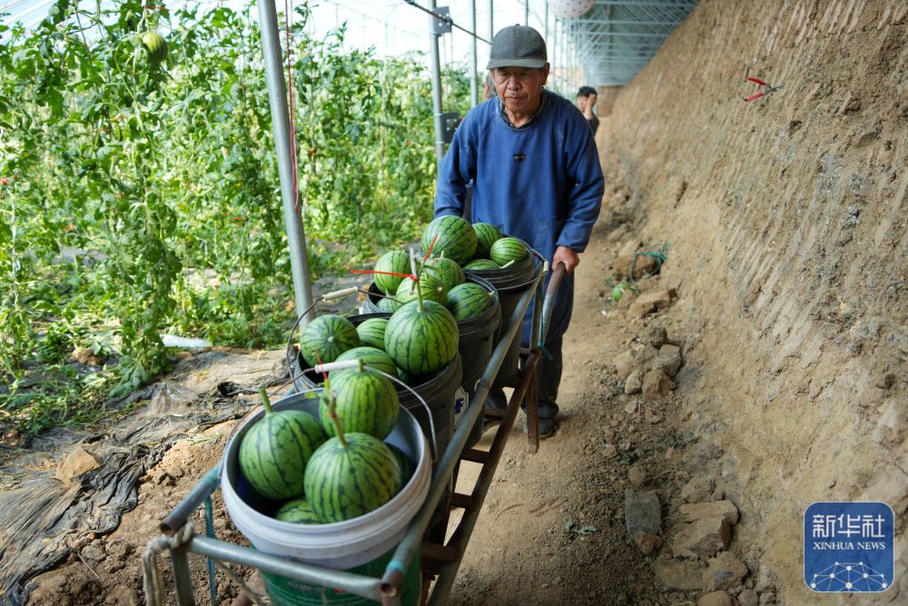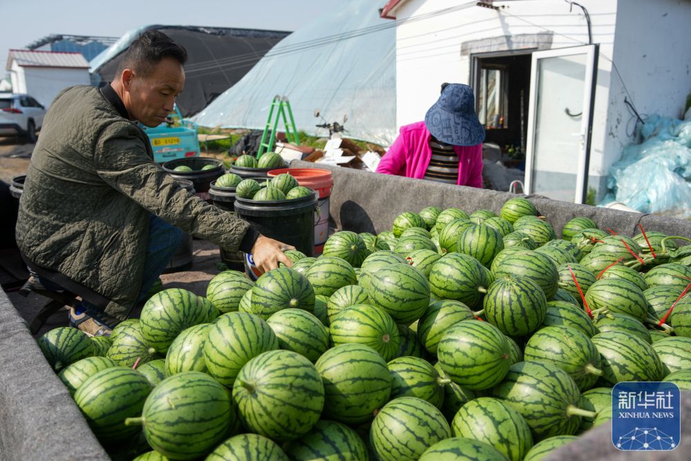 4月17日,在潍坊市昌乐县五图街道,一名瓜农在查看成熟的小型西瓜。近日,山东省潍坊市昌乐县大面积种植的小型西瓜进入成熟期,当地瓜农忙着收获,供应市场。西瓜是昌乐县主要经济作物之一,常年种植面积达16万亩,年产量超过60万吨。4月17日,在潍坊市昌乐县五图街道,瓜农把收获的小型西瓜装运上车。4月17日,在潍坊市昌乐县五图街道,瓜农在收获成熟的小型西瓜。
