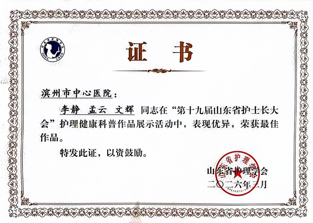 下一步,滨州市中心医院护理团队将以此次获奖为契机,持续夯实专业内涵、优化服务流程、提升服务品质,以更高标准、更优质量的护理服务守护群众健康,为区域护理事业高质量发展注入更多力量。
