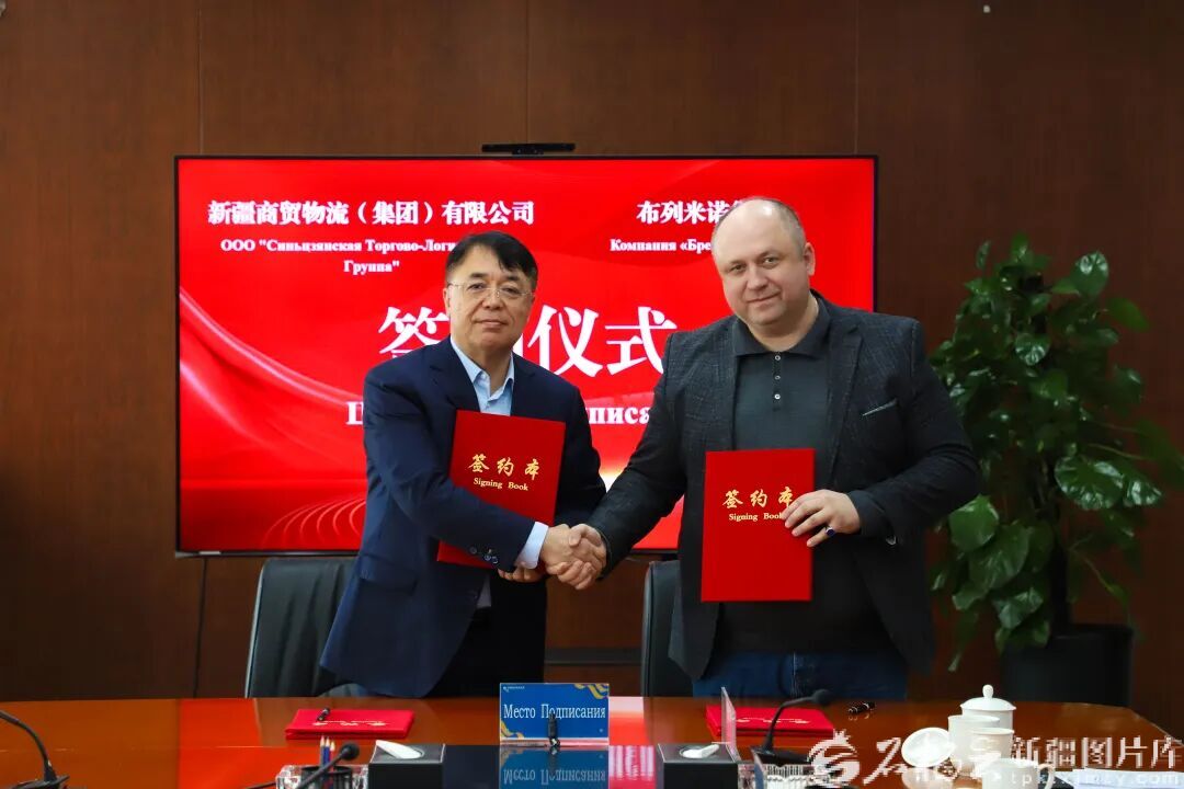 4月14日,新疆商贸物流(集团)有限公司与白俄罗斯布列米诺集团签署战略合作协议。图/新疆商贸物流集团提供