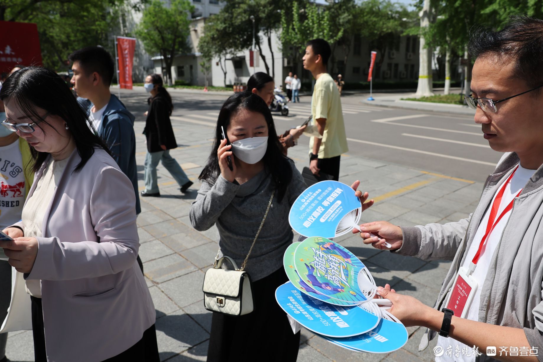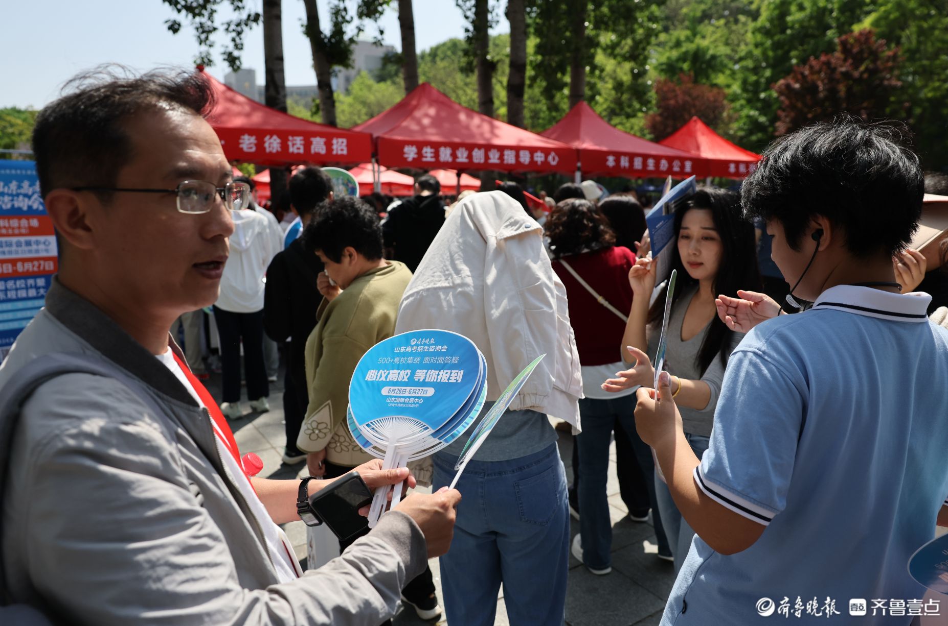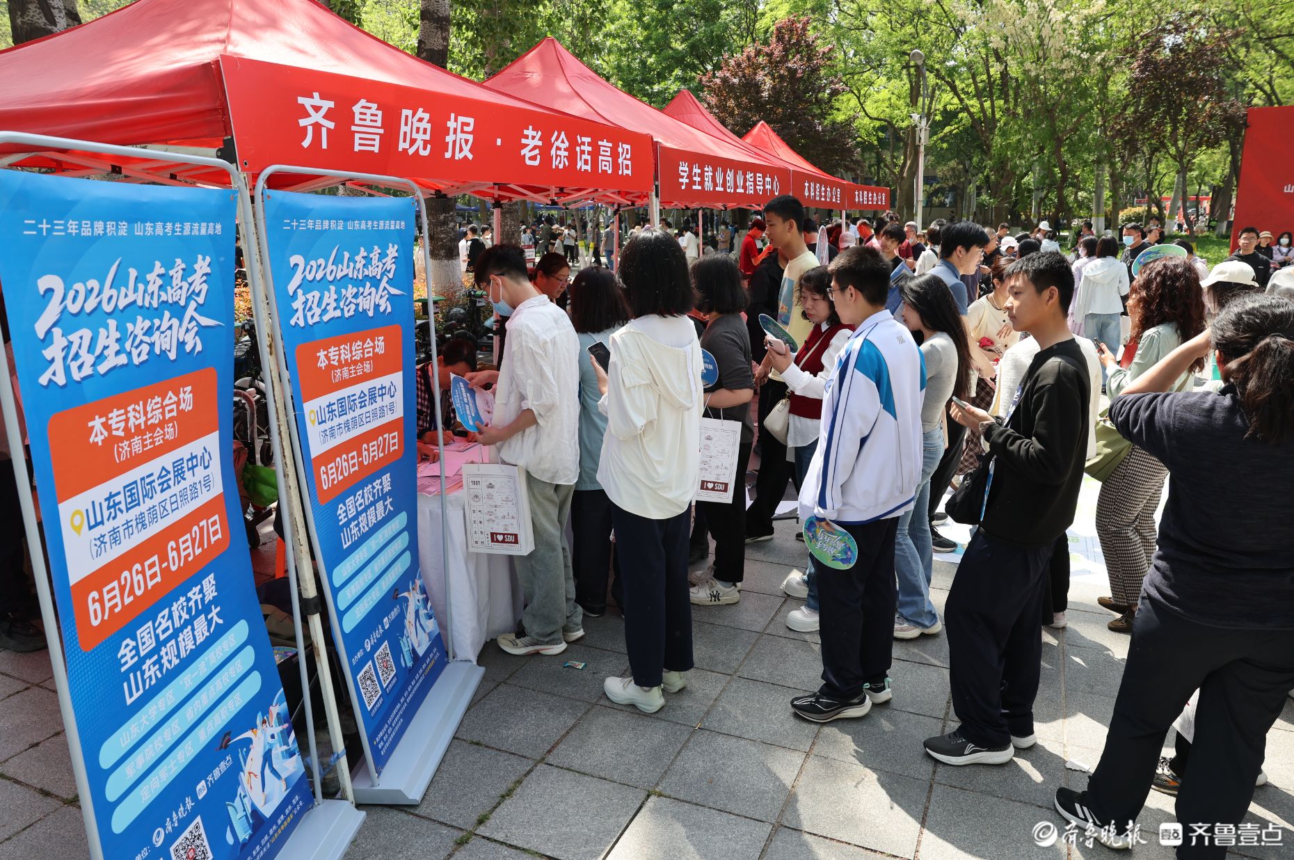 本次活动,齐鲁晚报·老徐话高招展位前聚集了很多学生和家长。工作人员为参加本次活动的学生准备了研学证书,凭身份证即可领取,另有小扇子等纪念品发放。家长还可现场了解2026年山东高考招生咨询会相关信息,有需要的家长可前往咨询。