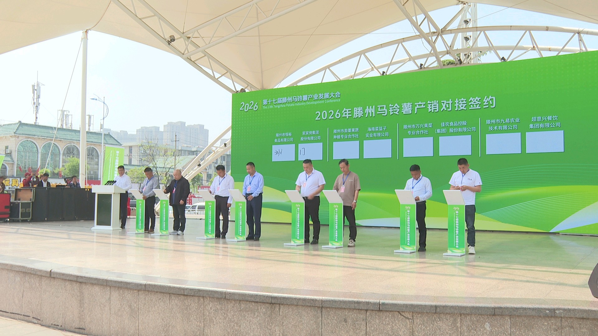 开幕式上,中国农业科学院蔬菜所、国家马铃薯产业体系首席专家徐建飞作马铃薯产业发展专题报告;内蒙古鑫雨种业有限公司总经理王荣军介绍马铃薯种薯繁育历程和原原种智能雾培项目情况;内蒙古鑫雨种业有限公司、滕州东方乡村振兴有限公司签订马铃薯原原种智能雾培项目战略合作协议;家家悦集团股份有限公司、海南菜篮子实业有限公司、佳农食品控股(集团)股份有限公司、济南华联超市有限公司等8家单位签订马铃薯产销对接合同。