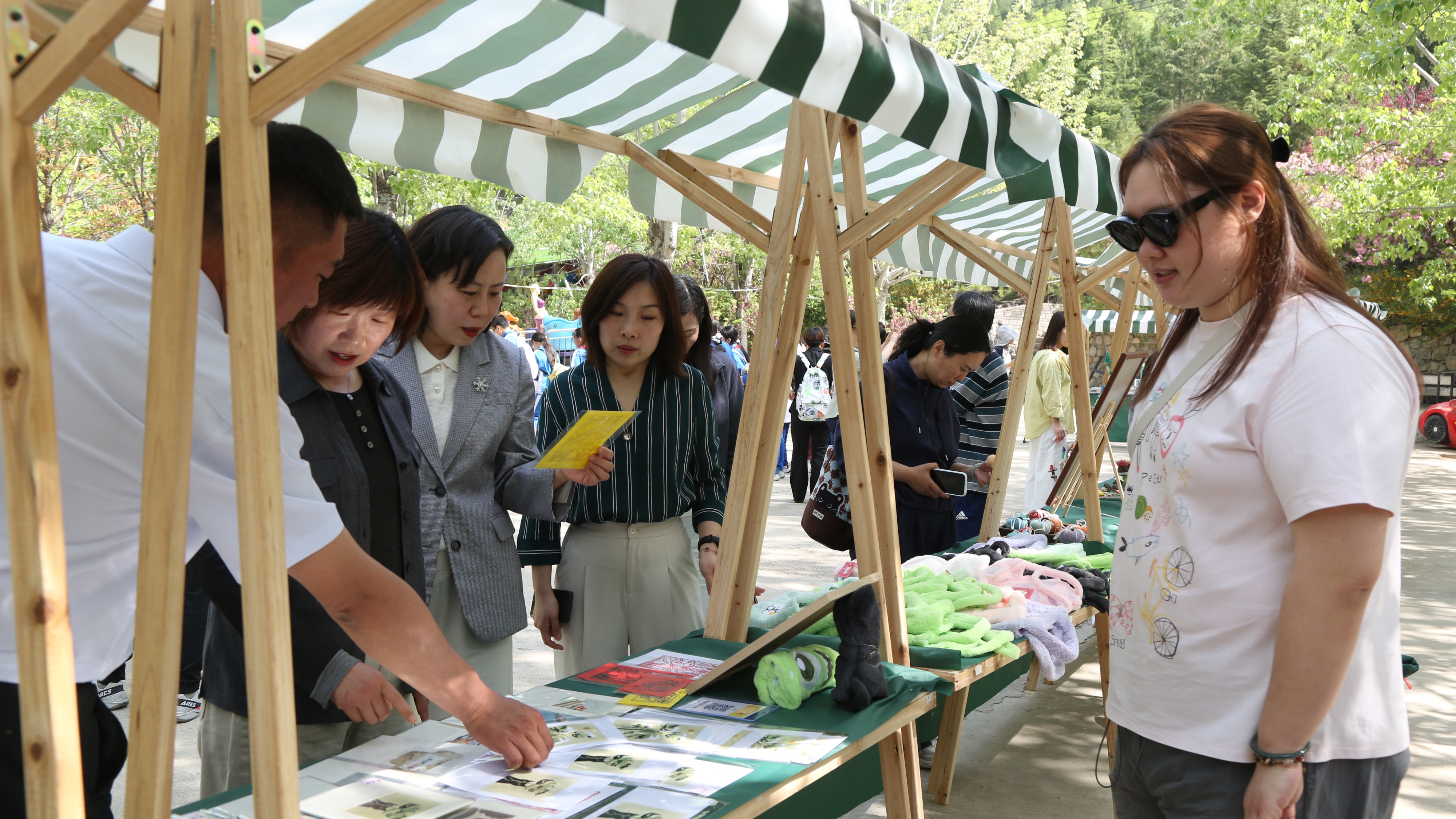在赏花绘画与书签制作区,市民可以免费领取空白书签,亲手绘制融入春日花卉、读书名言与博山文旅元素的专属文创。市民刘静带着6岁女儿前来踏青,孩子不仅做了专属书签,还和小伙伴一起读完了焦裕禄故事本土绘本,她笑着说:“比单纯逛景区有意义多了,孩子既能亲近自然,又能感受书香、了解家乡故事,以后家门口的文化活动我们肯定次次来。”