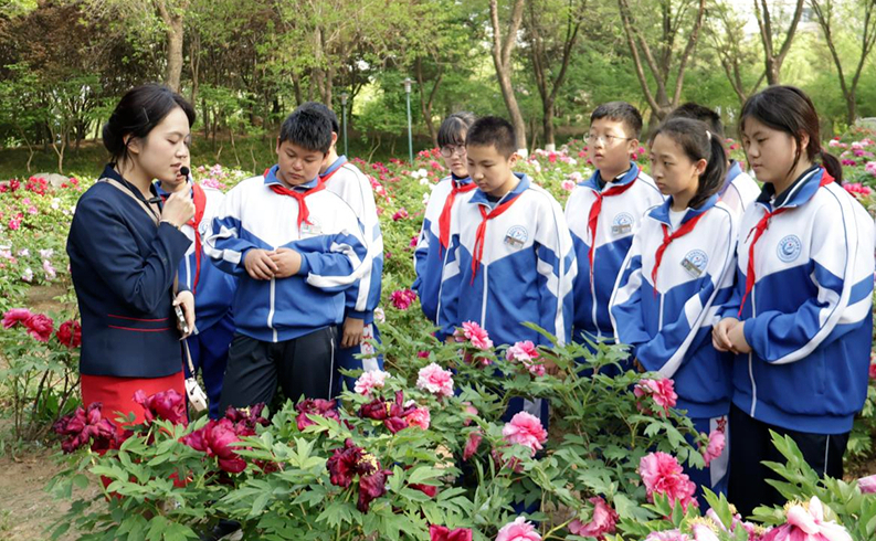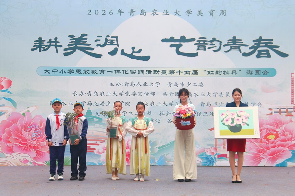 春和景明,牡丹盛放。4月17日,青岛农业大学联合青岛市少工委,在学校鼎盛花园举办“耕美润心 艺韵青春”大中小学思政教育一体化实践活动暨第十四届“虹韵牡丹”游园会。来自青岛市多所中小学的800余名师生走进校园,与青岛农业大学师生共赴一场融合红色传承、文化浸润、农业科普于一体的“大思政课”。