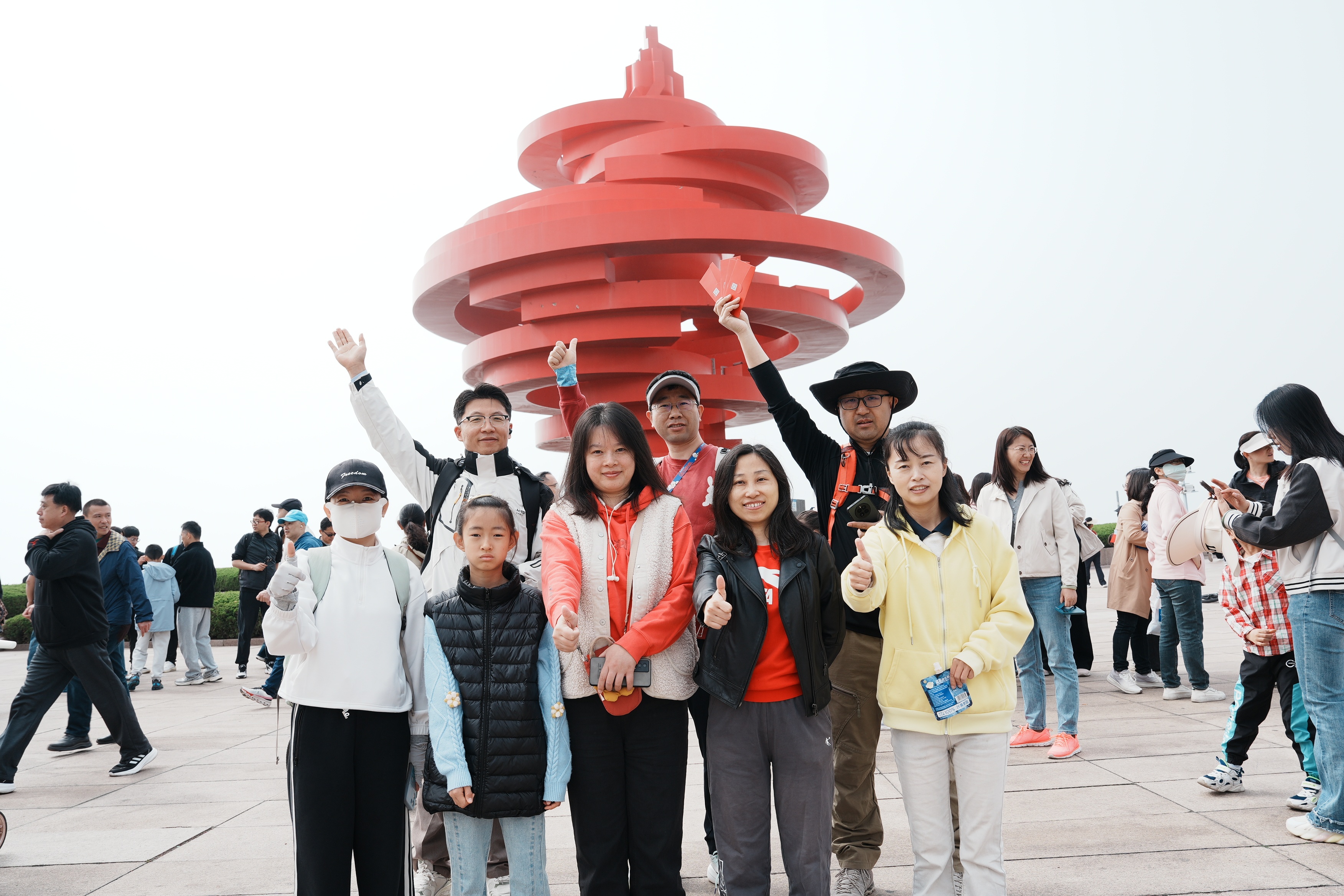 上午8时30分,参与活动的创客们陆续抵达五四广场“五月的风”雕塑旁,有序签到、列队。9时整,全体人员在起点处合影,定格下这充满意义的瞬间。随后,大家自发进行热身运动,为即将开始的行程做好充分准备。9时30分,随着一声令下,健步行活动正式拉开帷幕。